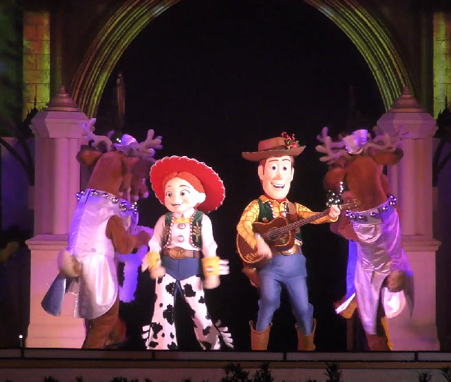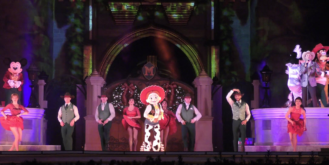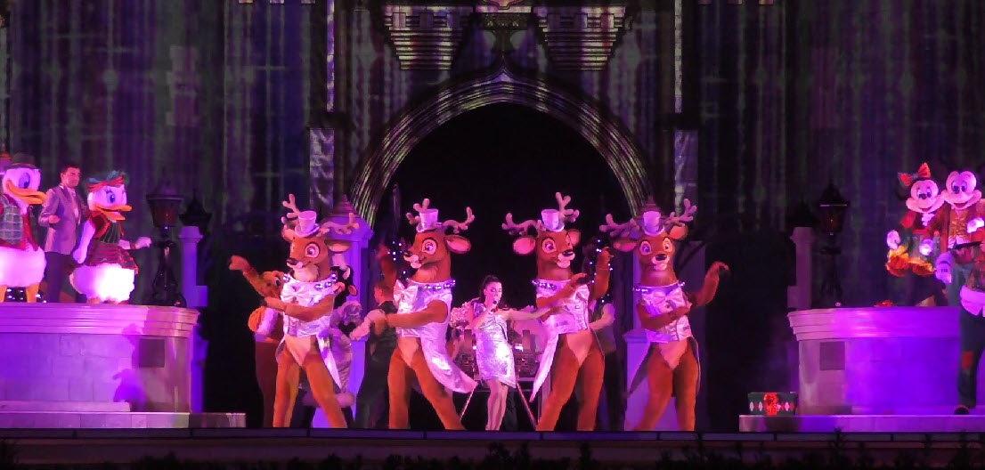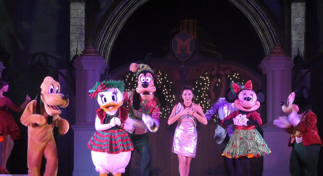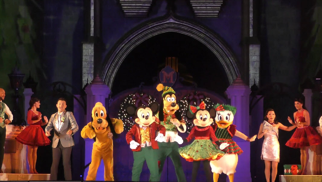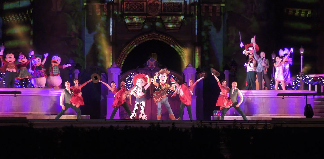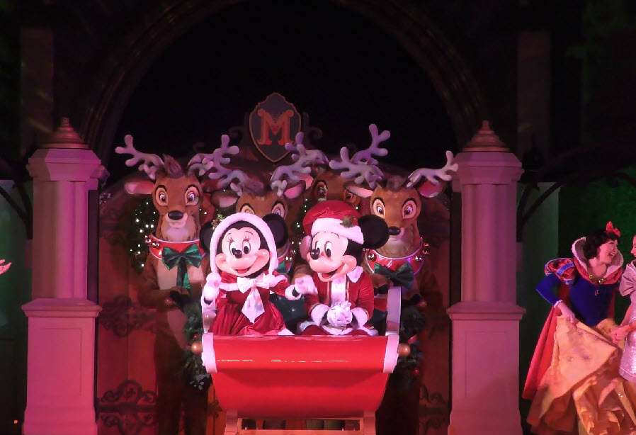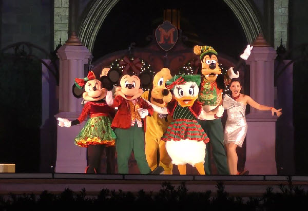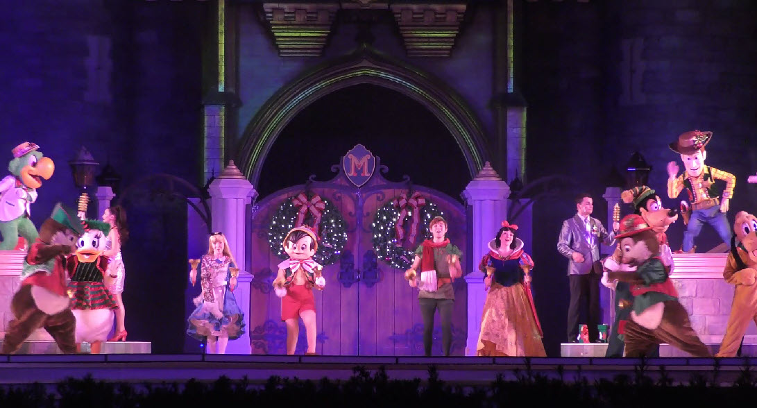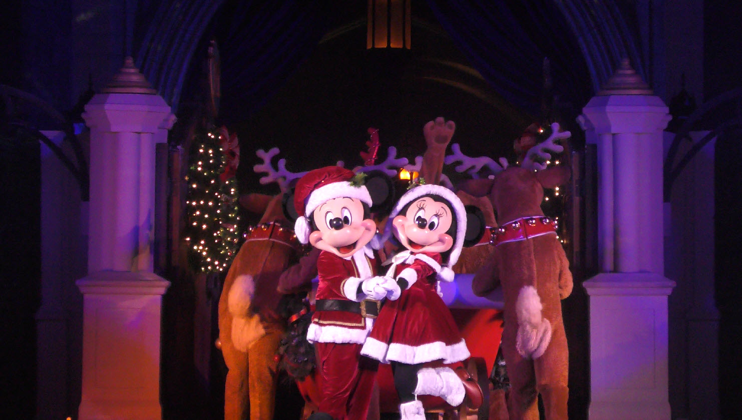 During this joyful performance, talented dancers and singers join beloved Disney Characters like Minnie, Donald, Goofy, and others. The cast performs a cheerful medley of holiday classics and original songs, creating a lively atmosphere full of merriment. The backdrop of Cinderella Castle, beautifully adorned in holiday lights, adds extra wonder to the celebration.