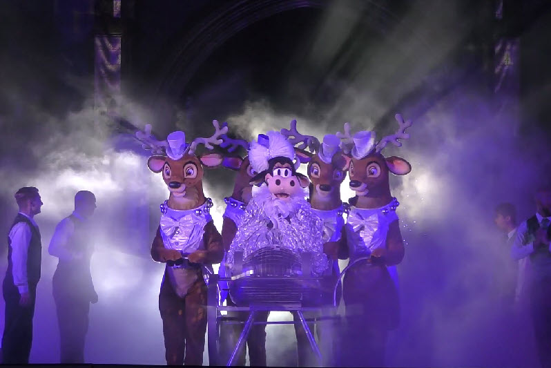 Today, we’re headed to the Cinderella Castle stage for an enchanting yuletide experience you won’t want to miss! Get ready to be dazzled by the festive spirit as Mickey Mouse and friends take center stage in “Mickey’s Most Merriest Celebration.”This show overflows with holiday magic, festive tunes, and sparkling snowflakes that light up the night.