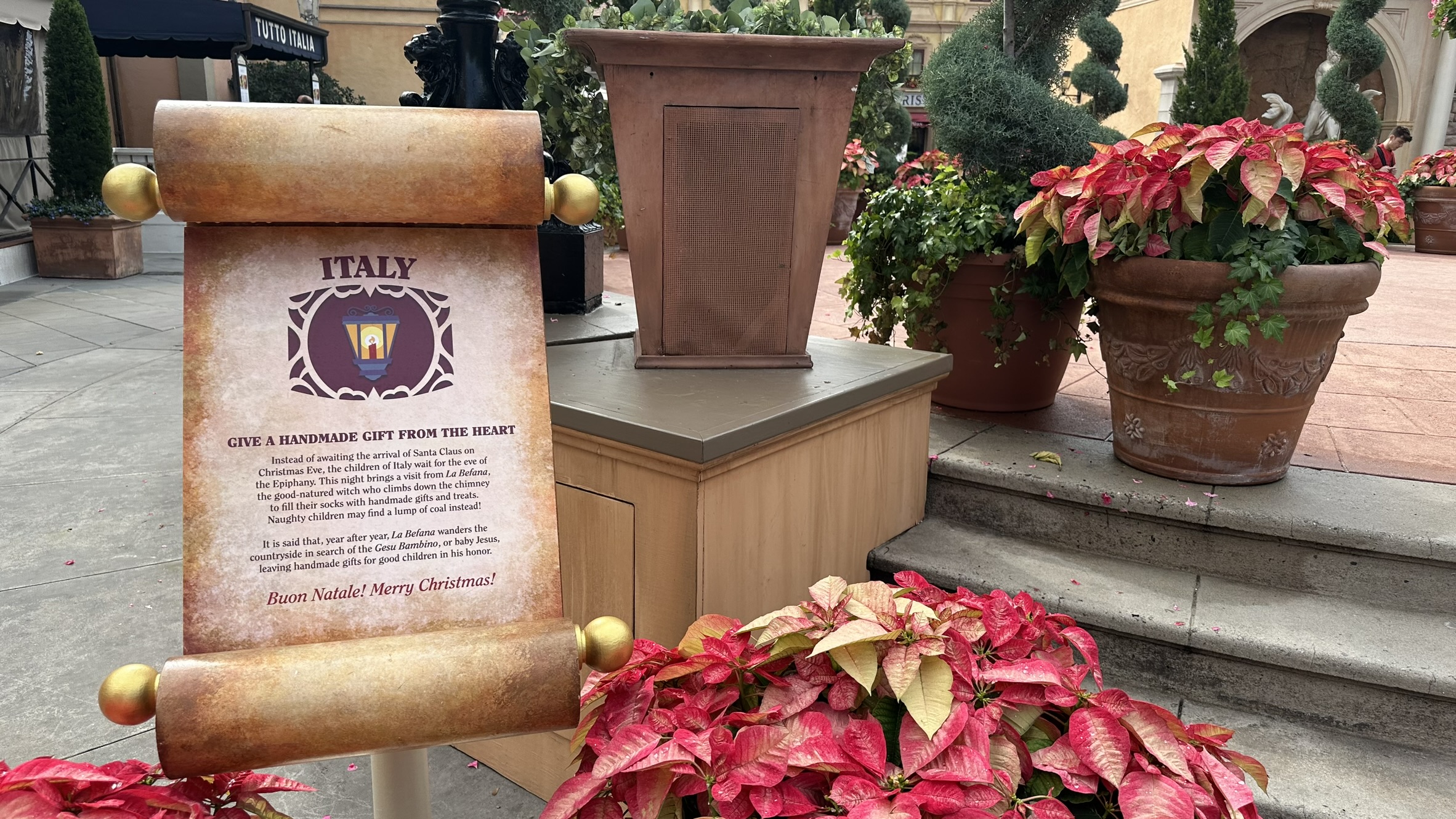 Epcot’s Festival of the Holidays brings seasonal traditions from around the world to life. In the Italy Pavilion, guests can experience the heartwarming story of La Befana, a kindhearted witch who visits sleeping children on the eve of the Epiphany, delivering gifts and sweets to those who have been good throughout the year.