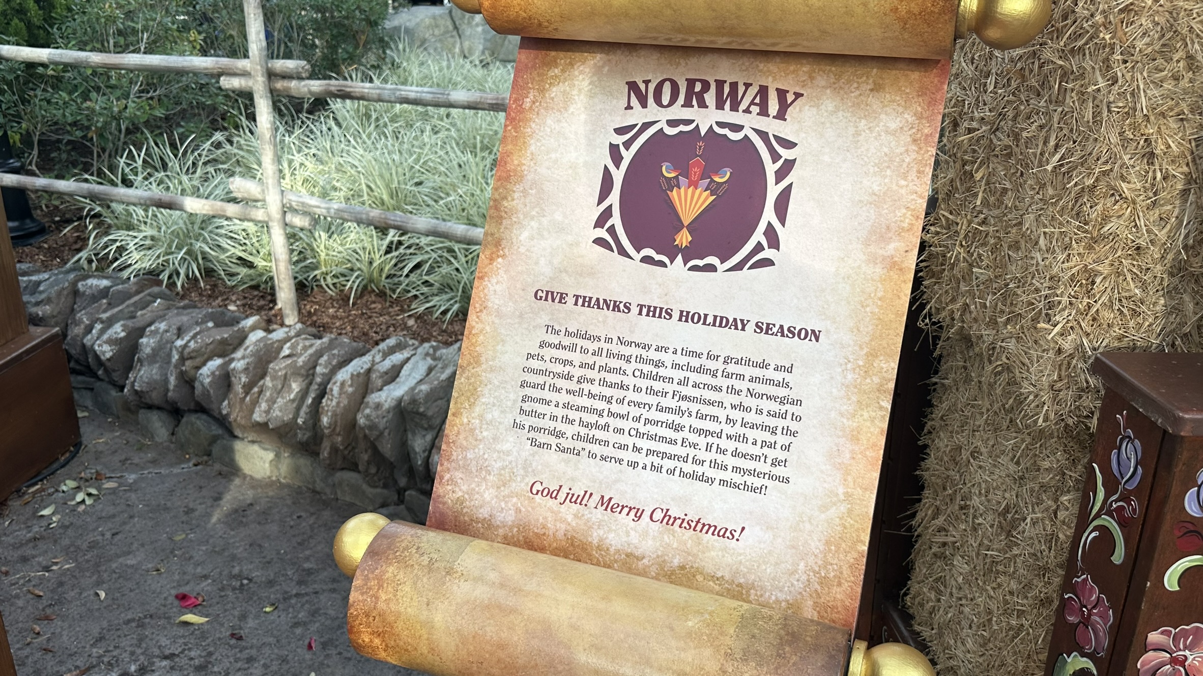 The holiday season at Epcot’s Festival of the Holidays brings festive fun, laughter, and cherished traditions from around the world. One of the most delightful performances takes place in the Norway Pavilion, where Sigrid and the Barn Santa share the magic of a traditional Norwegian Christmas in a storytelling experience like no other.