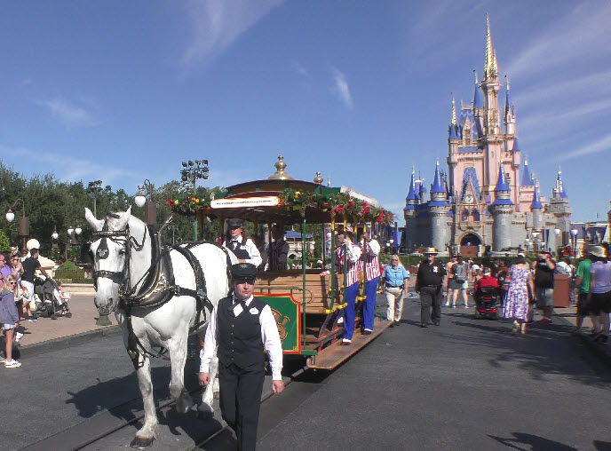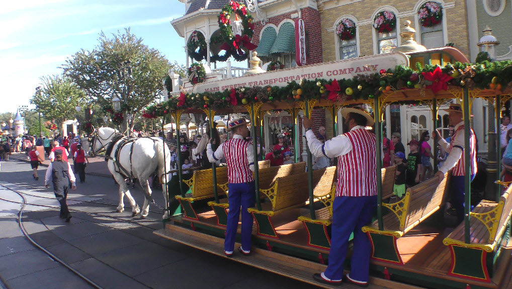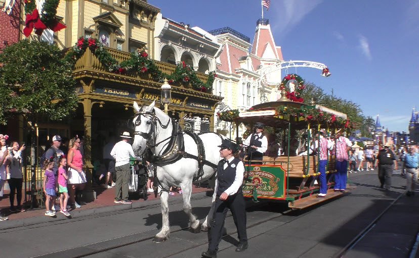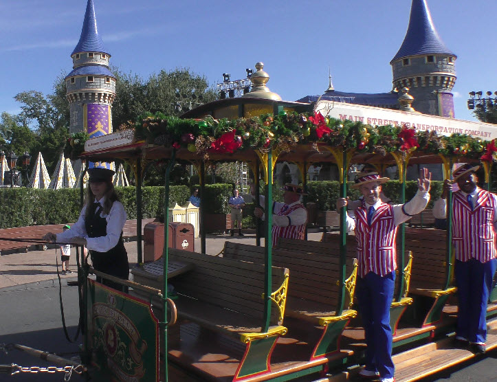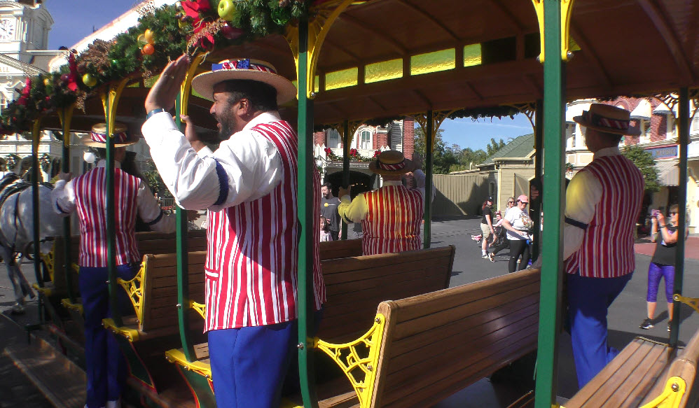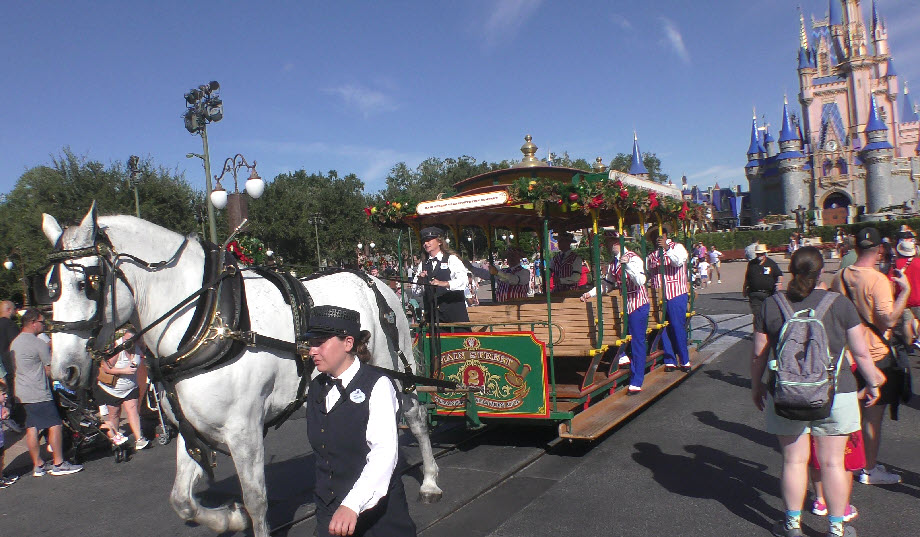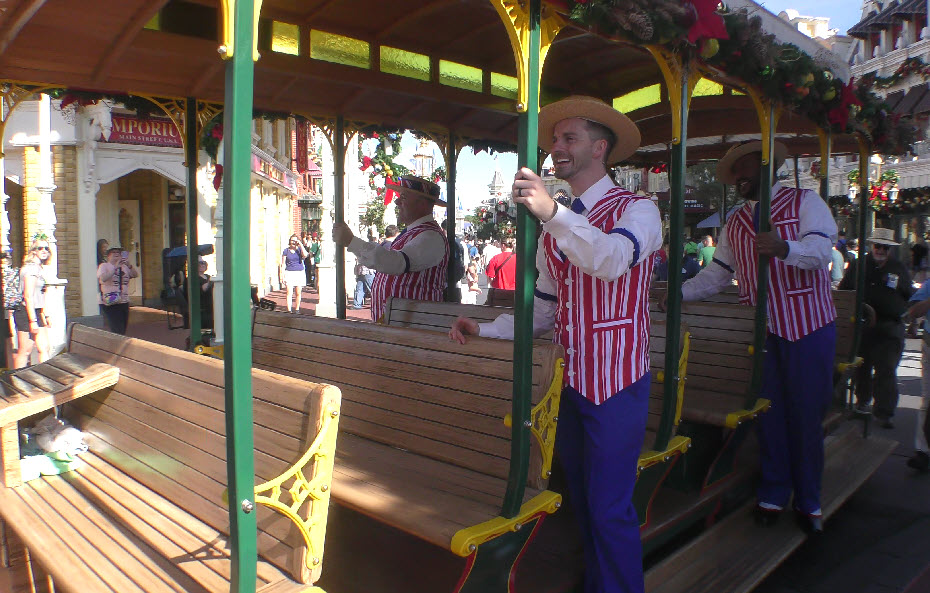 In December 2023, the Magic Kingdom was alive with festive flair, and few moments captured that holiday spirit better than the Dapper Dans on the move! Known for their old-time harmony and barbershop charm, the Dapper Dans spread seasonal cheer while cruising down Main Street, U.S.A., aboard a beautifully decorated horse-drawn trolley.