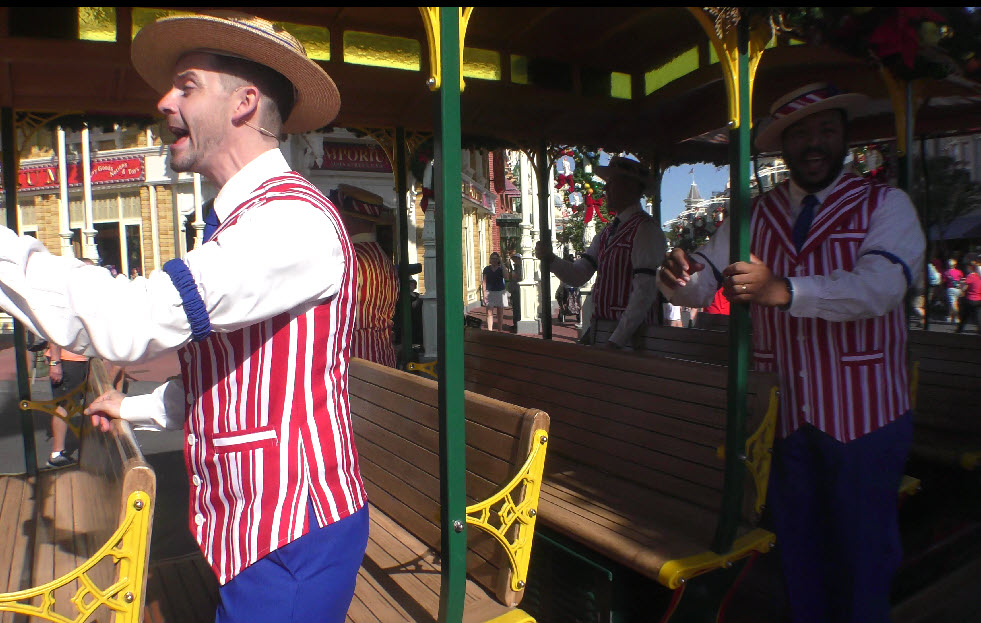 Capturing the Dapper Dans in motion is no easy feat! I followed them from the Barbershop to the middle of Main Street, then around the Hub and back again. The bright Florida sunshine made it a challenge, but it was worth every second to preserve this unique holiday performance.