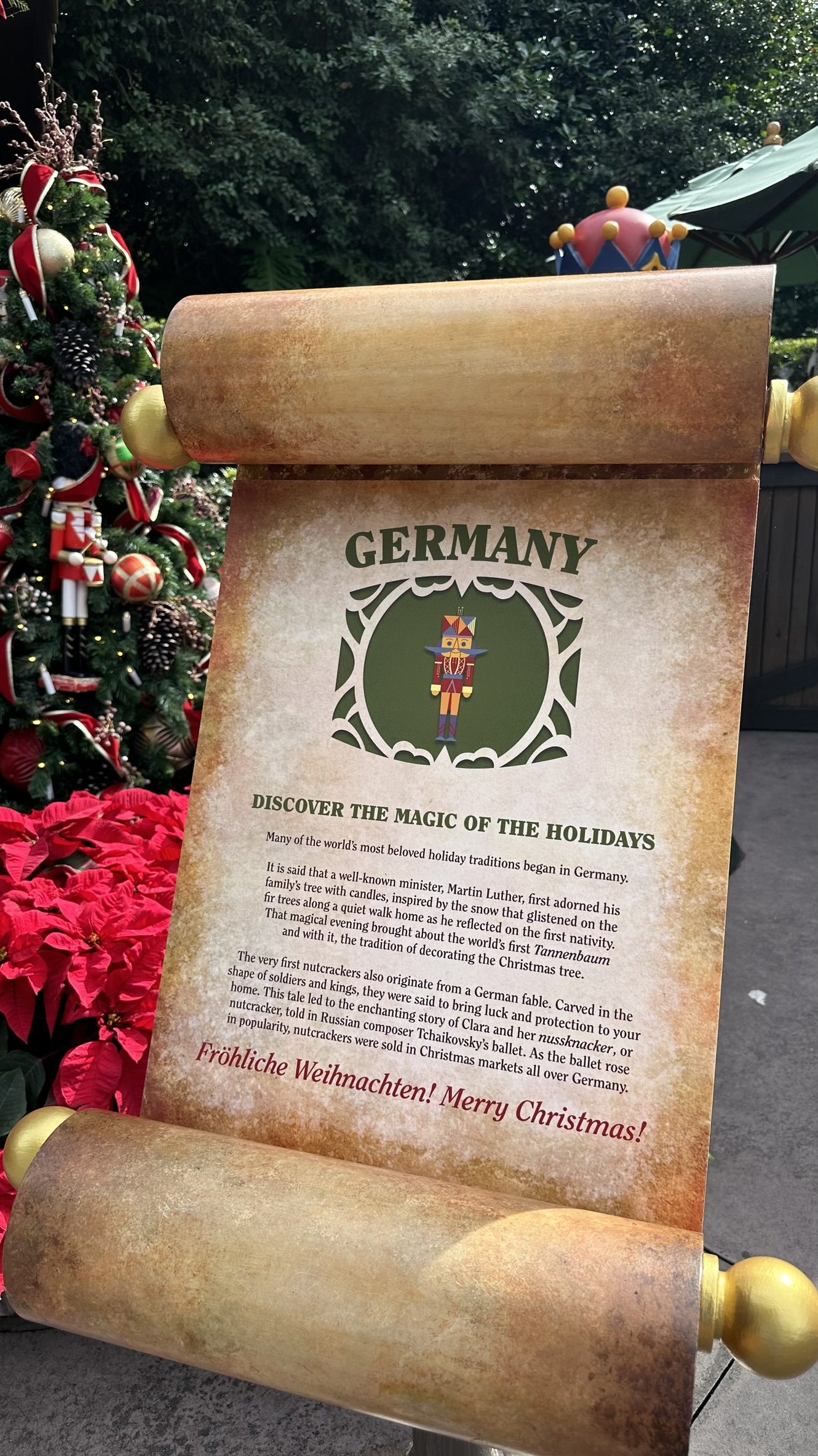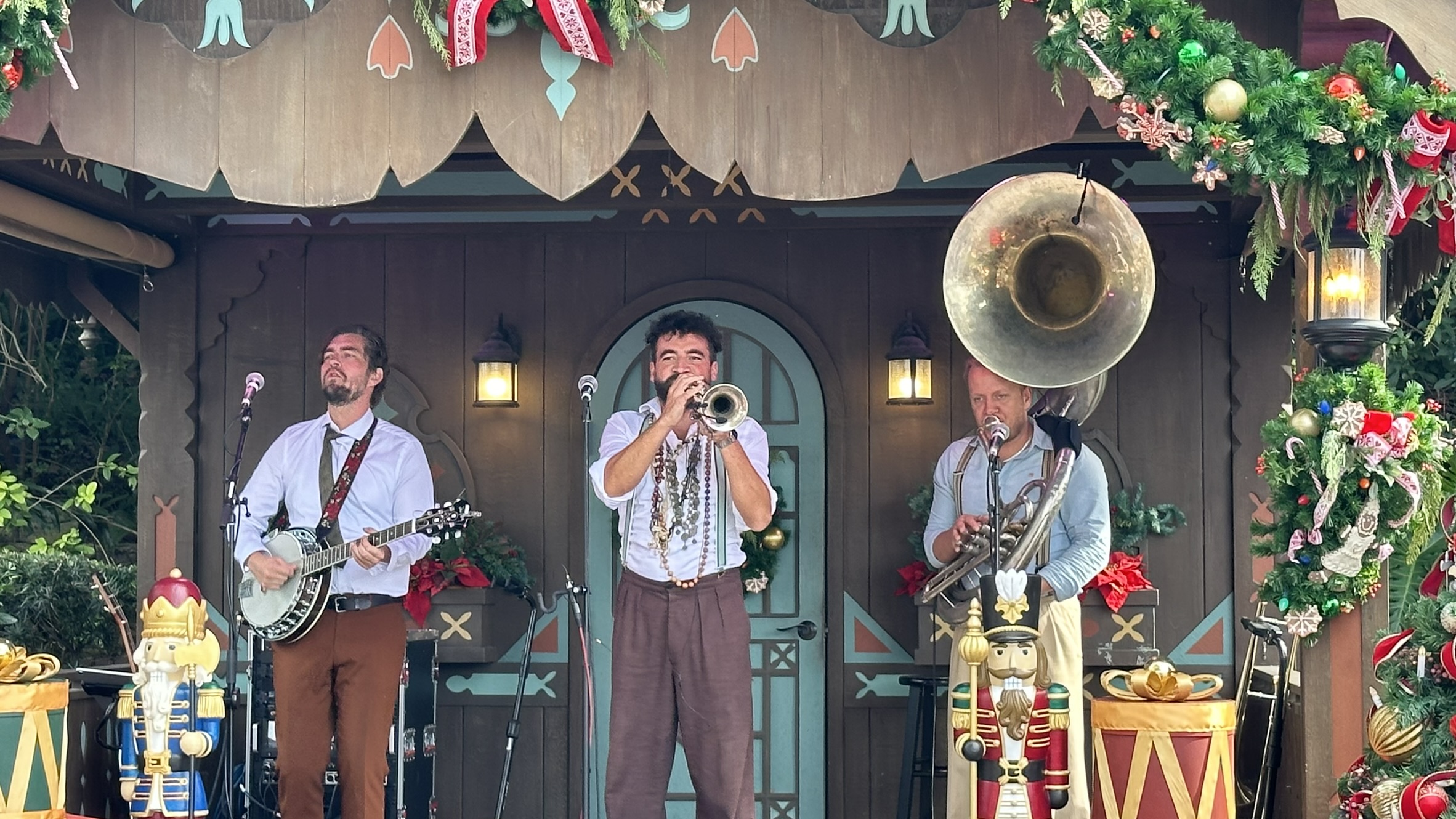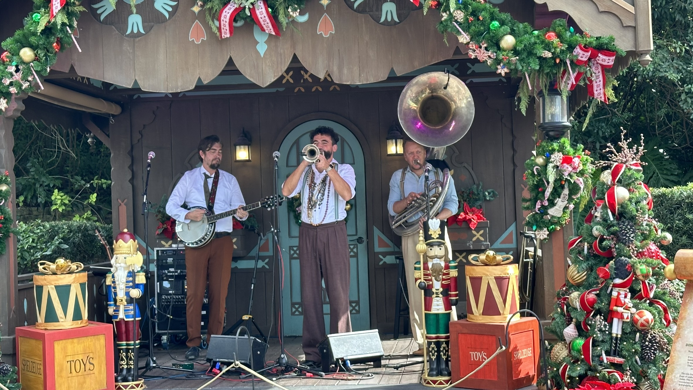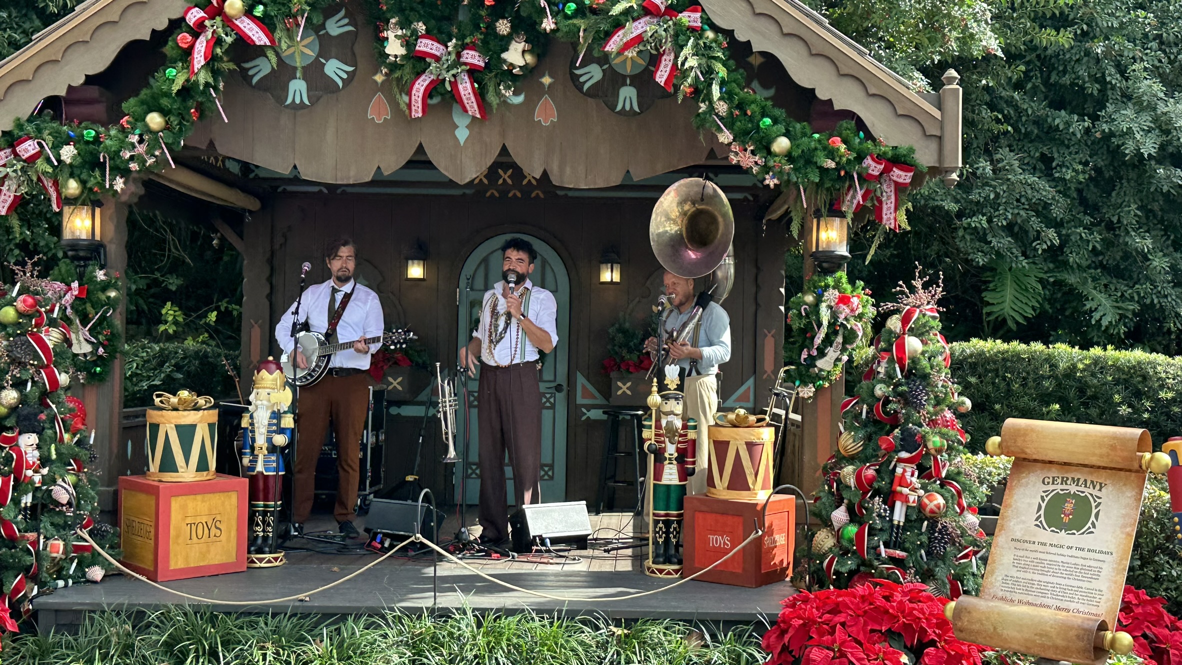 Today’s visit to the Germany Gazebo at Epcot’s Festival of the Holidays 2023 was anything but traditional. Instead of classic German holiday tales or traditional Christmas music, guests were treated to the lively sounds of Whisky Denker, a German band.