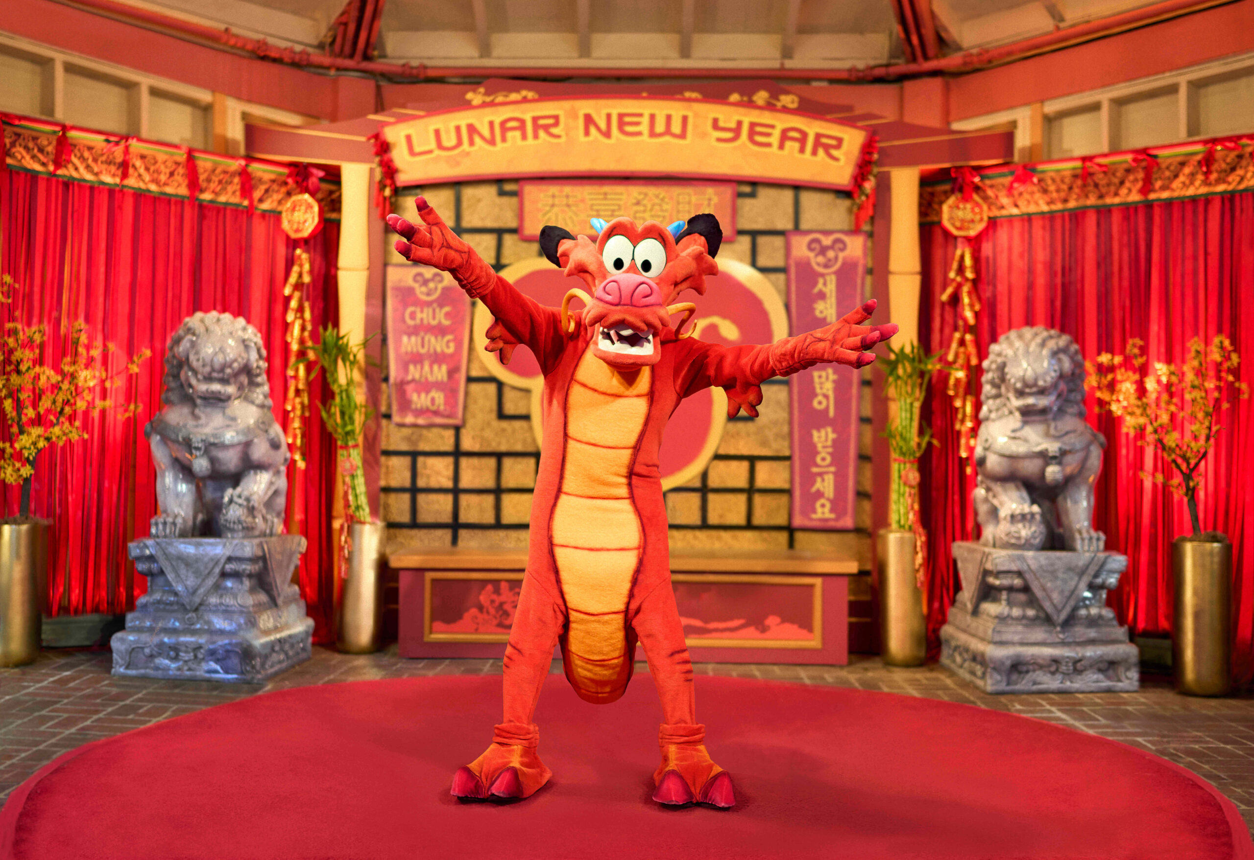 From Jan. 23 through Feb. 18, 2024, guests can meet Mushu during the Lunar New Year celebration at Disney California Adventure Park in Anaheim, Calif. The Lunar New Year celebration at Disney California Adventure Park is a joyous tribute to Chinese, Korean and Vietnamese cultures. At the celebration, guests can savor Asian-inspired dishes at Lunar New Year Marketplaces; experience dazzling entertainment such as “Mulan’s Lunar New Year Procession” to “Hurry Home – Lunar New Year Celebration,” and more. (Richard Harbaugh/Disneyland Resort)