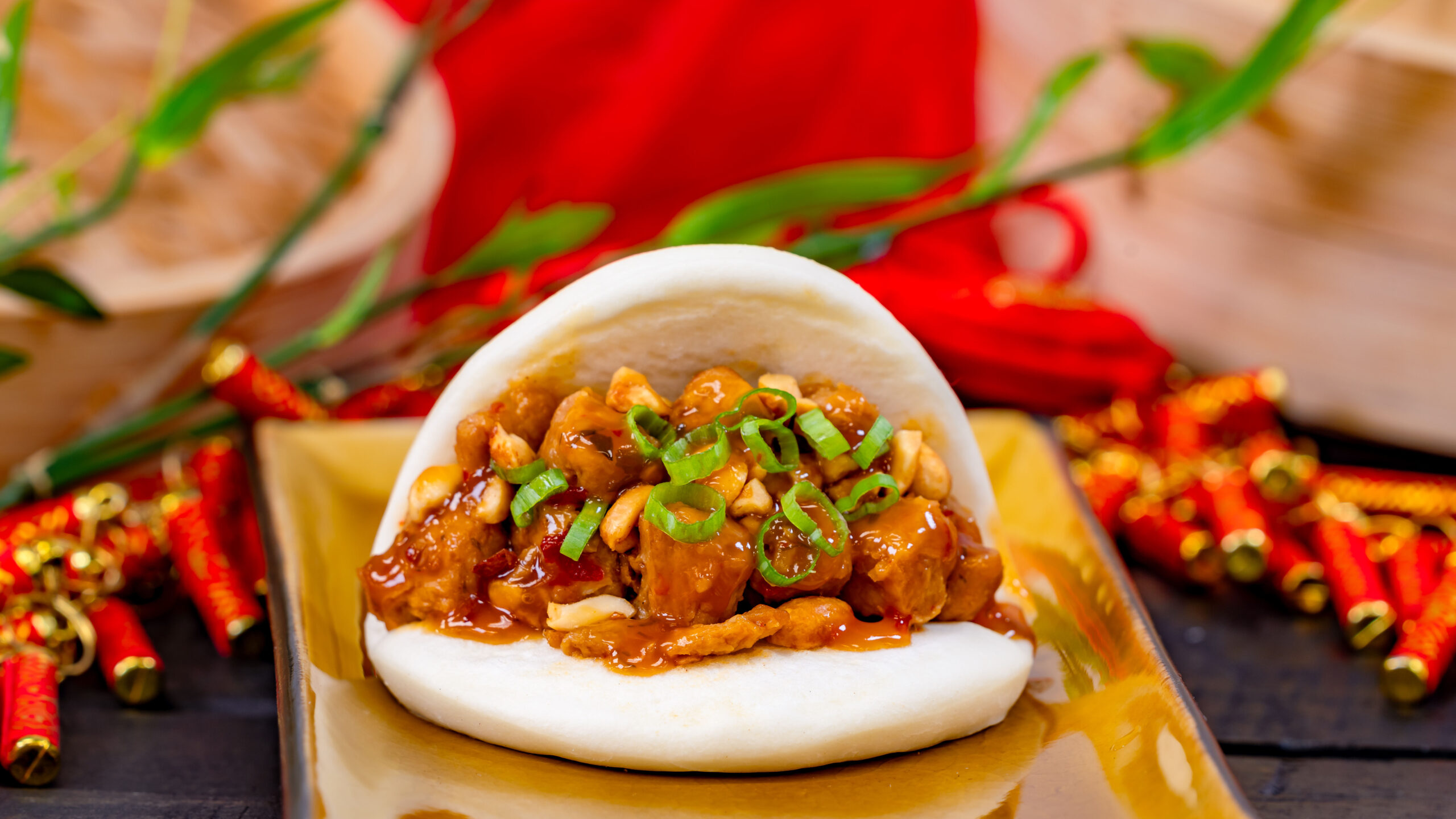 Kung Pao Bao (Prosperity Bao & Buns at Disney California Adventure Park in Anaheim, Calif.) – with chicken, toasted peanuts and scallions. Available beginning Jan. 23, 2024. For more details, visit DisneyParksBlog.com. (David Nguyen/Disneyland Resort)