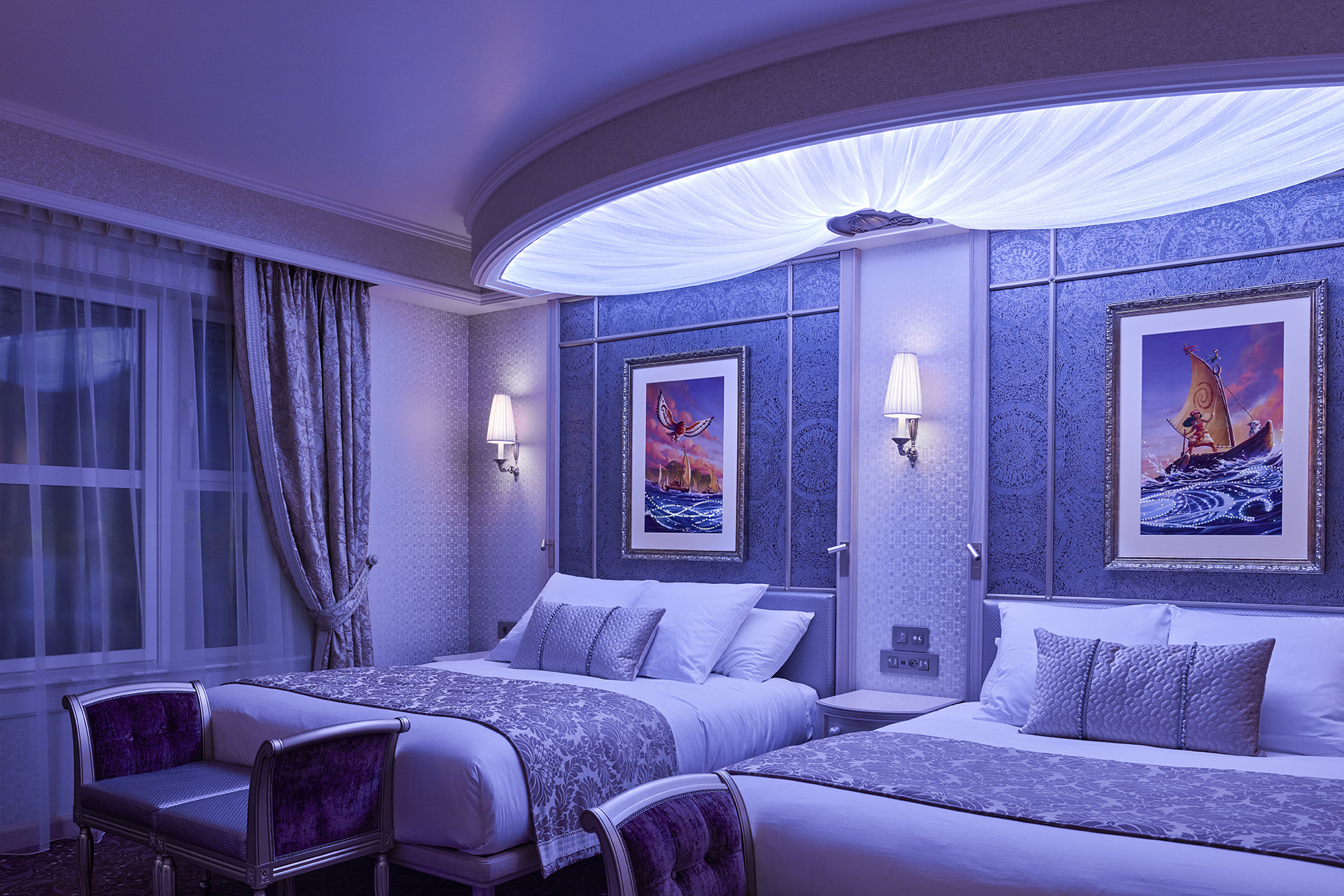 The Deluxe Room takes guests one step further in the celebration of the 11 featured Walt Disney Animation Studios royal stories. For the magical bedtime ritual experience, an illuminated animated canopy above the bed, along with exclusive artworks showcasing iconic moments from these Disney stories magically come to life with a special enchantment in the room
