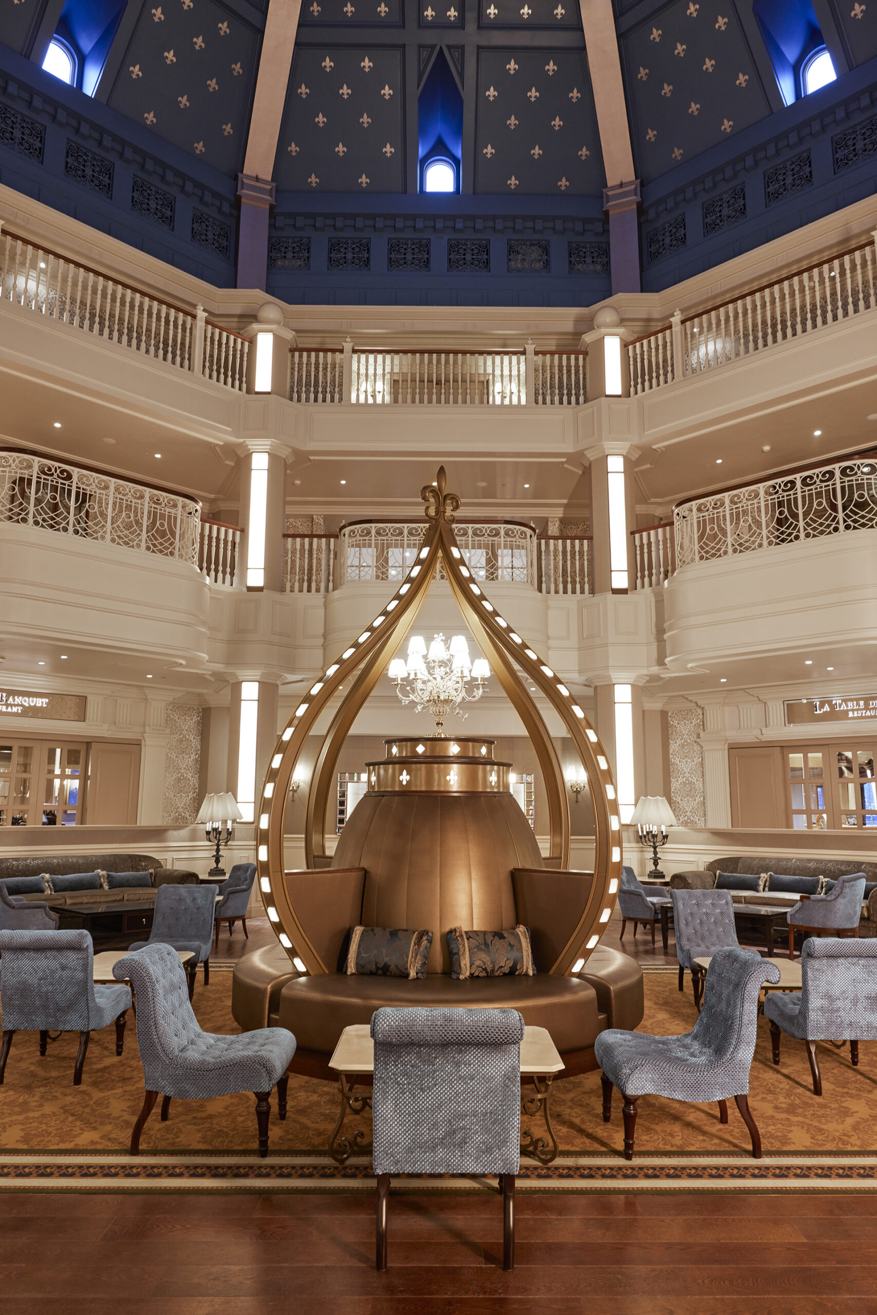 The red-carpet treatment awaits one and all at Disneyland Hotel. The royal experience begins the moment guests enter the grand lobby: an architectural masterpiece inspired by the libraries of world-famous French castles, blending prestigious materials in a symphony of ivory and gold tones