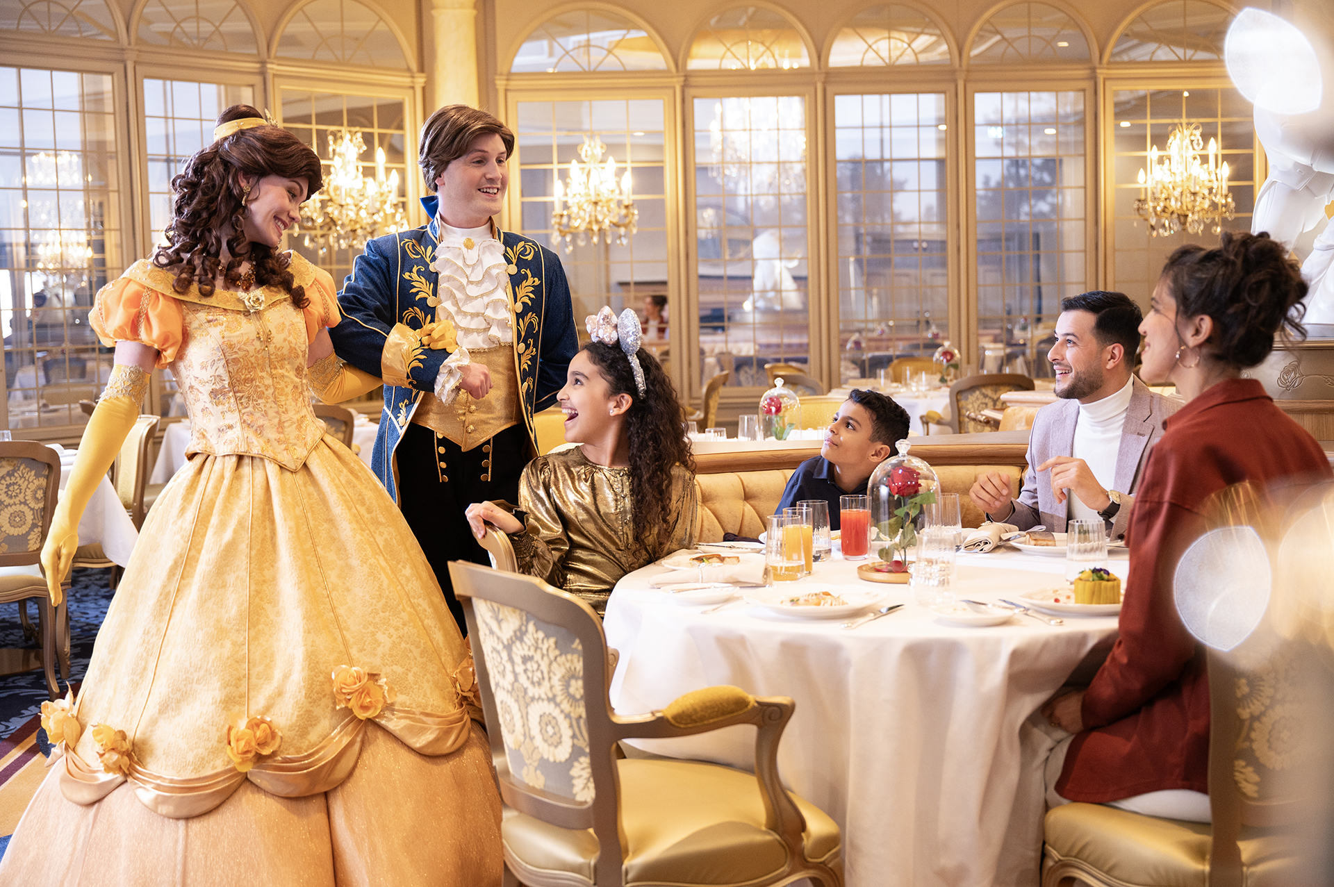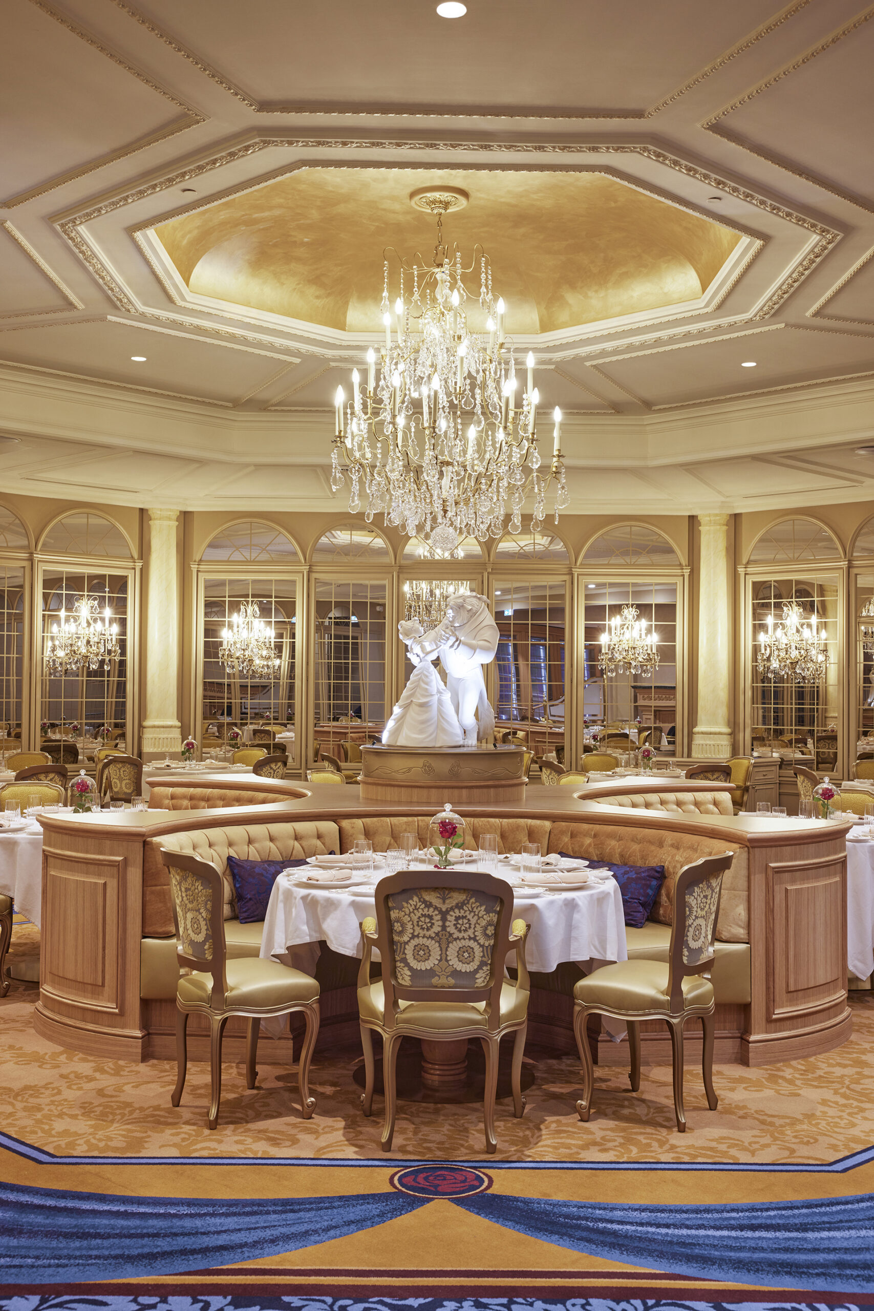 At La Table de Lumière, guests enjoy table service dinner in a space paying homage to the Beauty and the Beast ballroom scene, which itself was inspired by the Hall of Mirrors in Versailles Castle