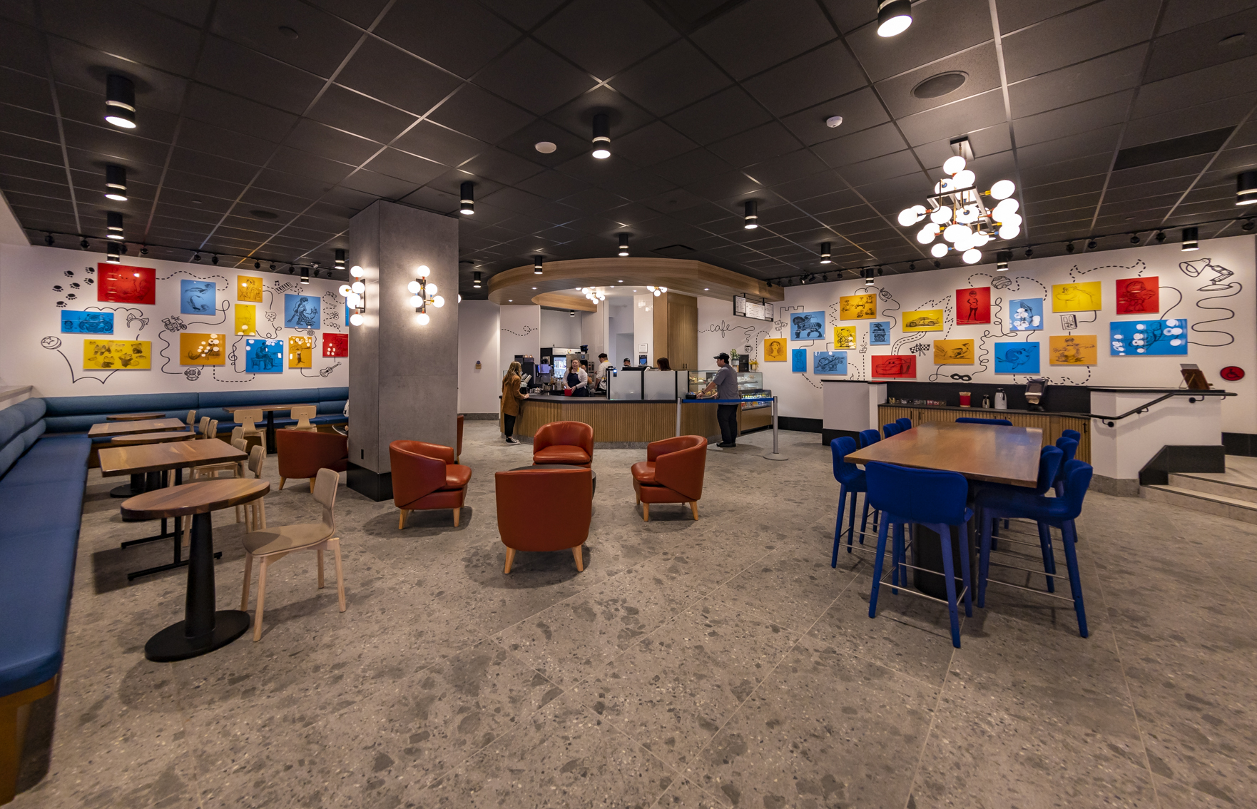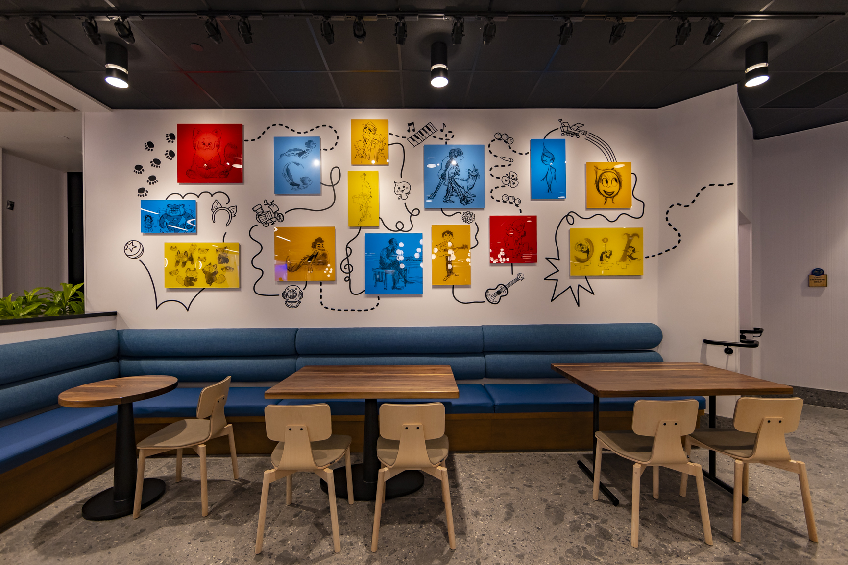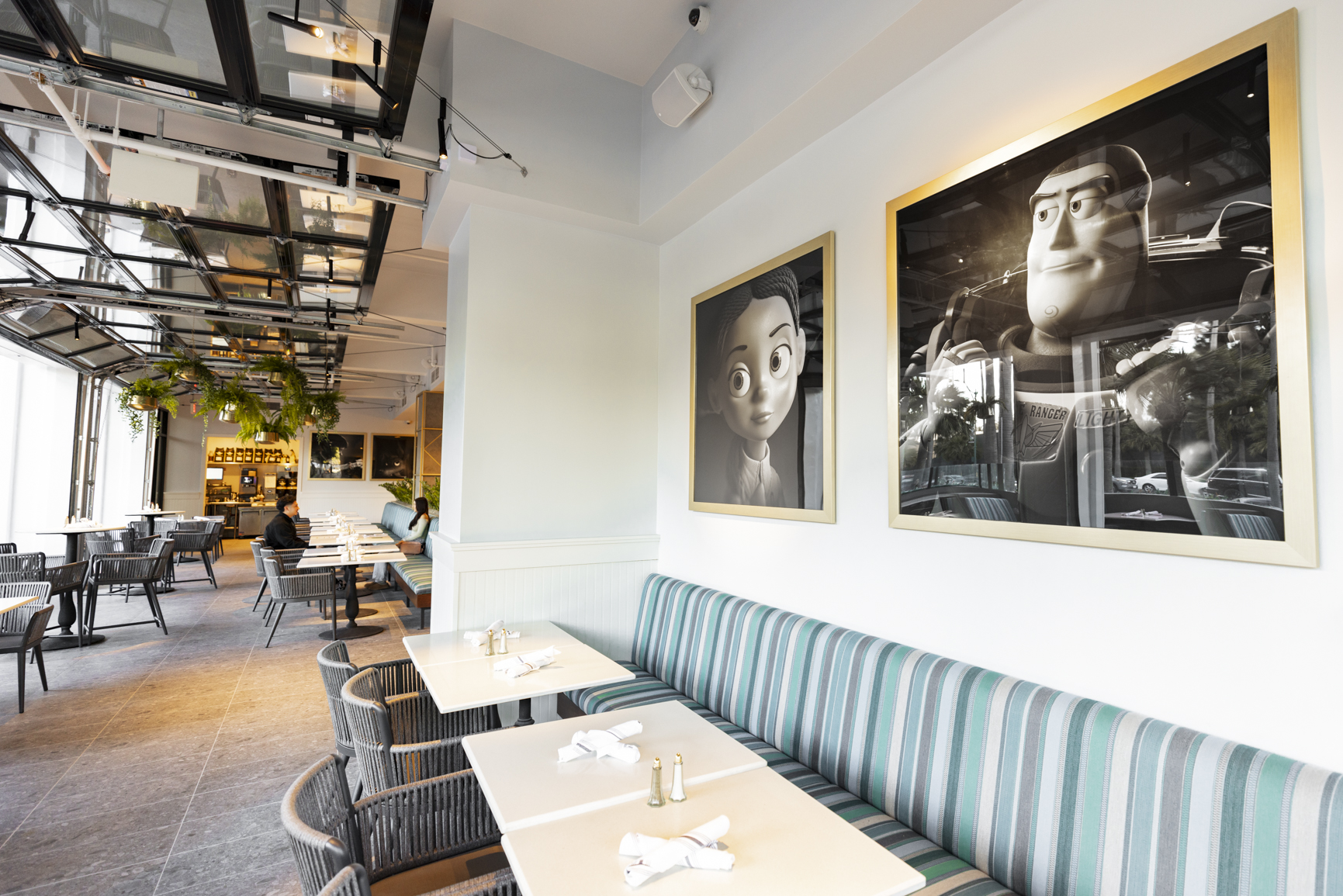 The Sketch Pad Café: A grab-and-go coffee spot near the lobby with Pixar film timelines displayed in early concept art.