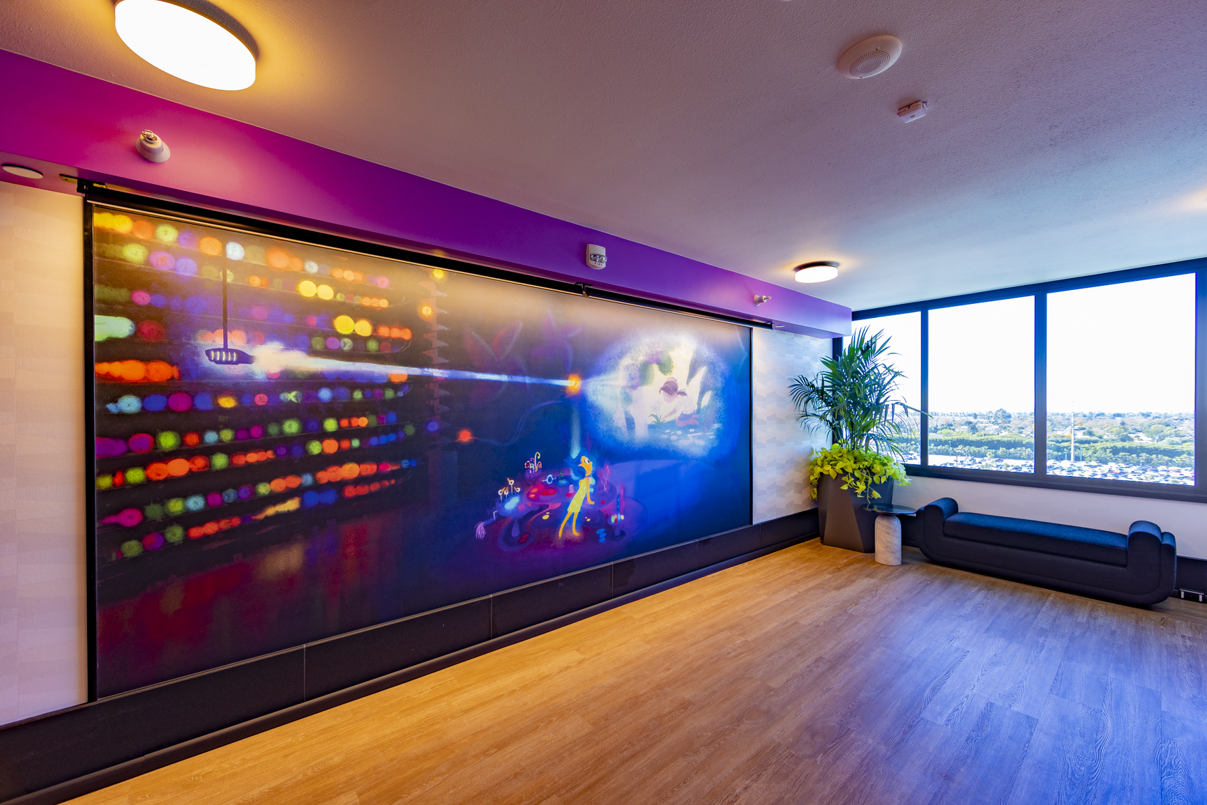 Pixar Place Hotel at Disneyland Resort in Anaheim, Calif., weaves the artistry of Pixar into a comfortable and contemporary setting where guests gain a new perspective on some of their favorite Pixar worlds and characters. Through carefully curated artwork and décor, Pixar Place Hotel evokes the inspiration and humor that goes into every Pixar film, while celebrating the artistic process. (Christian Thompson/Disneyland Resort)