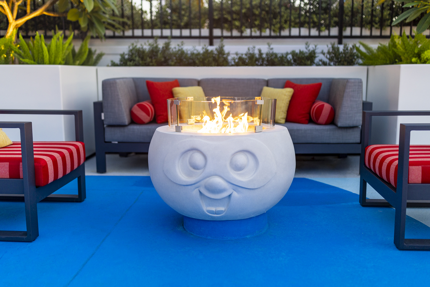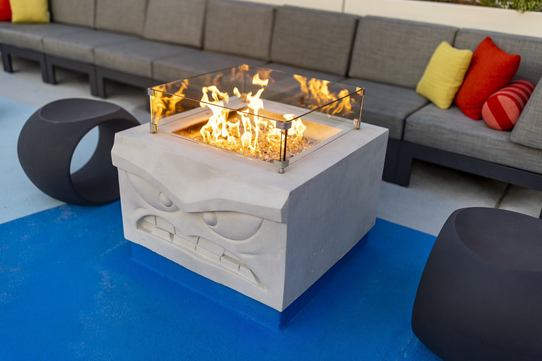 At Pixar Place Hotel at Disneyland Resort in Anaheim, Calif., guests can lounge on the rooftop deck near the pool on cozy couches surrounding firepits inspired by some of Pixar’s more hotheaded characters, including Jack-Jack from Pixar’s “The Incredibles” and Anger from Pixar’s “Inside Out.” (Christian Thompson/Disneyland Resort)