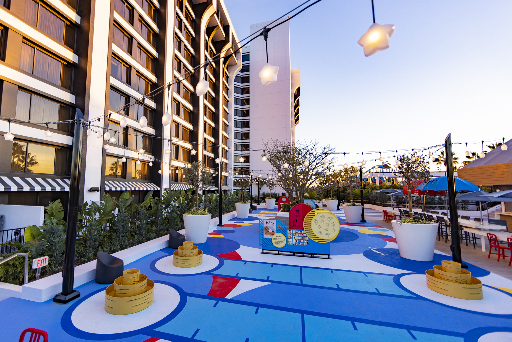 Guests can enjoy their stay by heading to the Pixar Shorts Court on the rooftop deck of Pixar Place Hotel at Disneyland Resort in Anaheim, Calif., with interactive games and imaginative free play inspired by Pixar’s famous short films “La Luna,” “Bao,” “For the Birds” and “Burrow.” (Christian Thompson/Disneyland Resort)