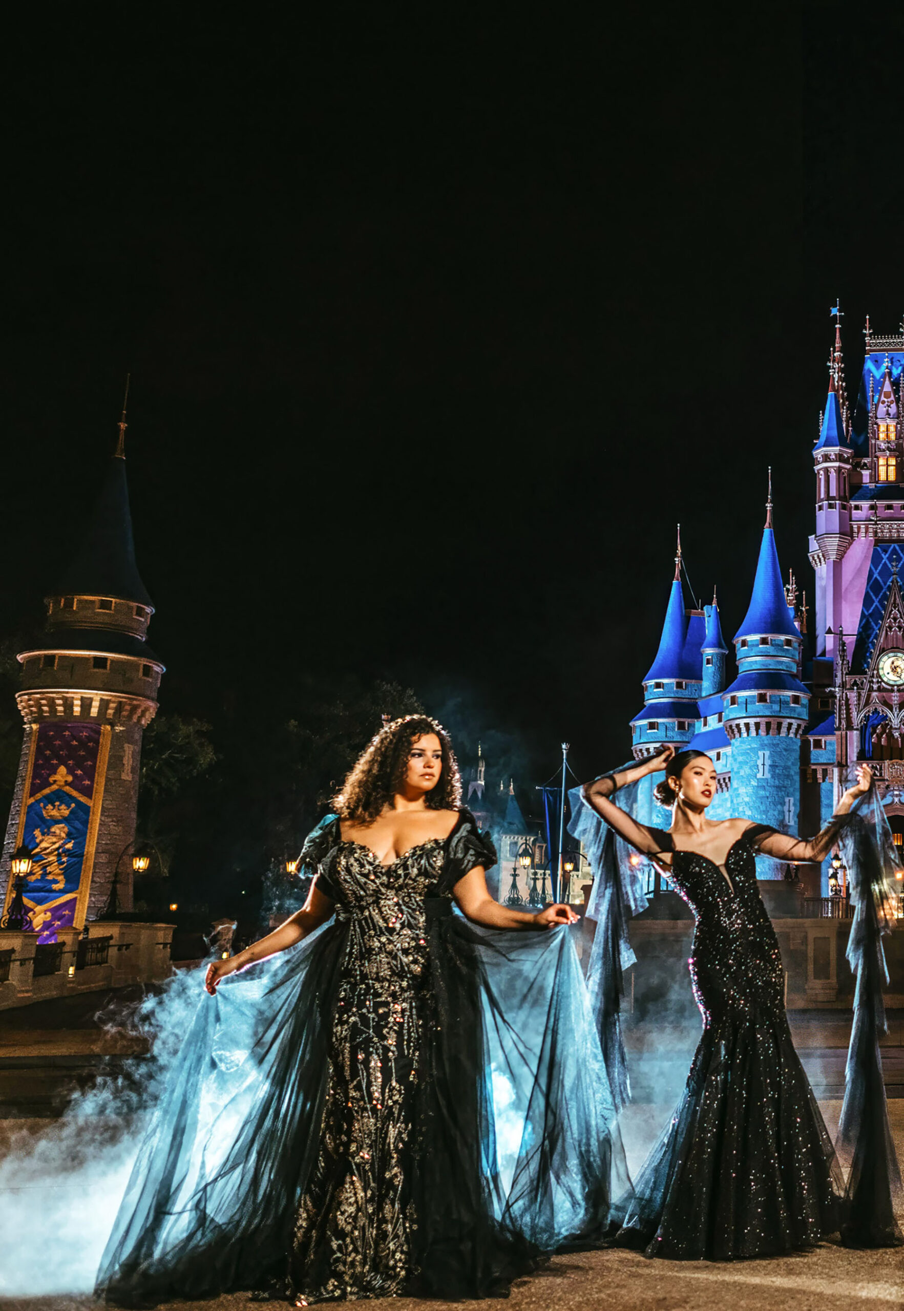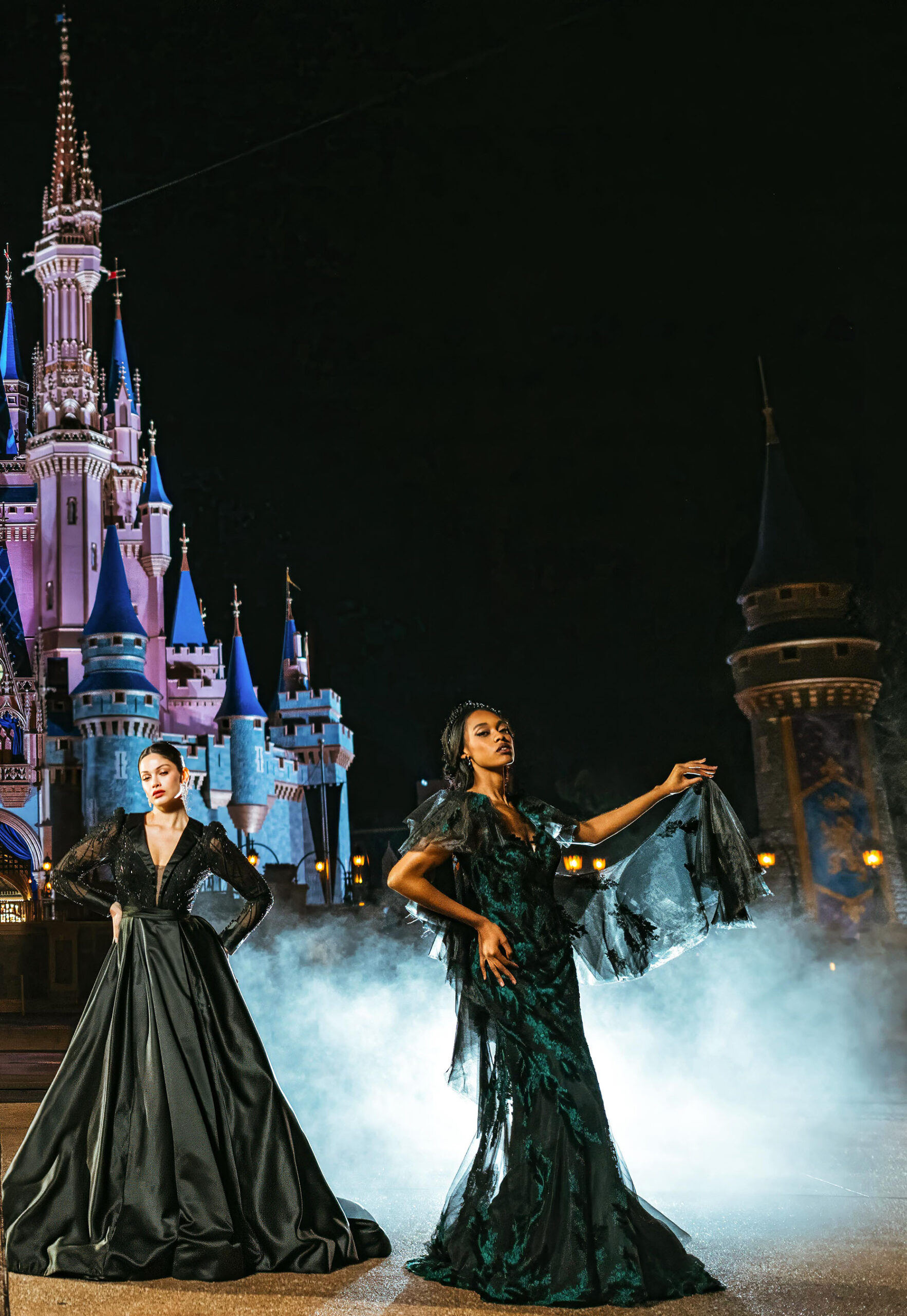 Disney Villains inspired the newest additions to the 2024 Disney’s Fairy Tale Weddings collection from Alure Bridals. Showcased in front of Cinderella Castle at Walt Disney World Resort in Lake Buena Vista, Fla., the Disney Villains collection includes four gowns featuring popular characters Ursula, Maleficent, the evil Queen and Jafar. (Claire Celeste, Photographer)