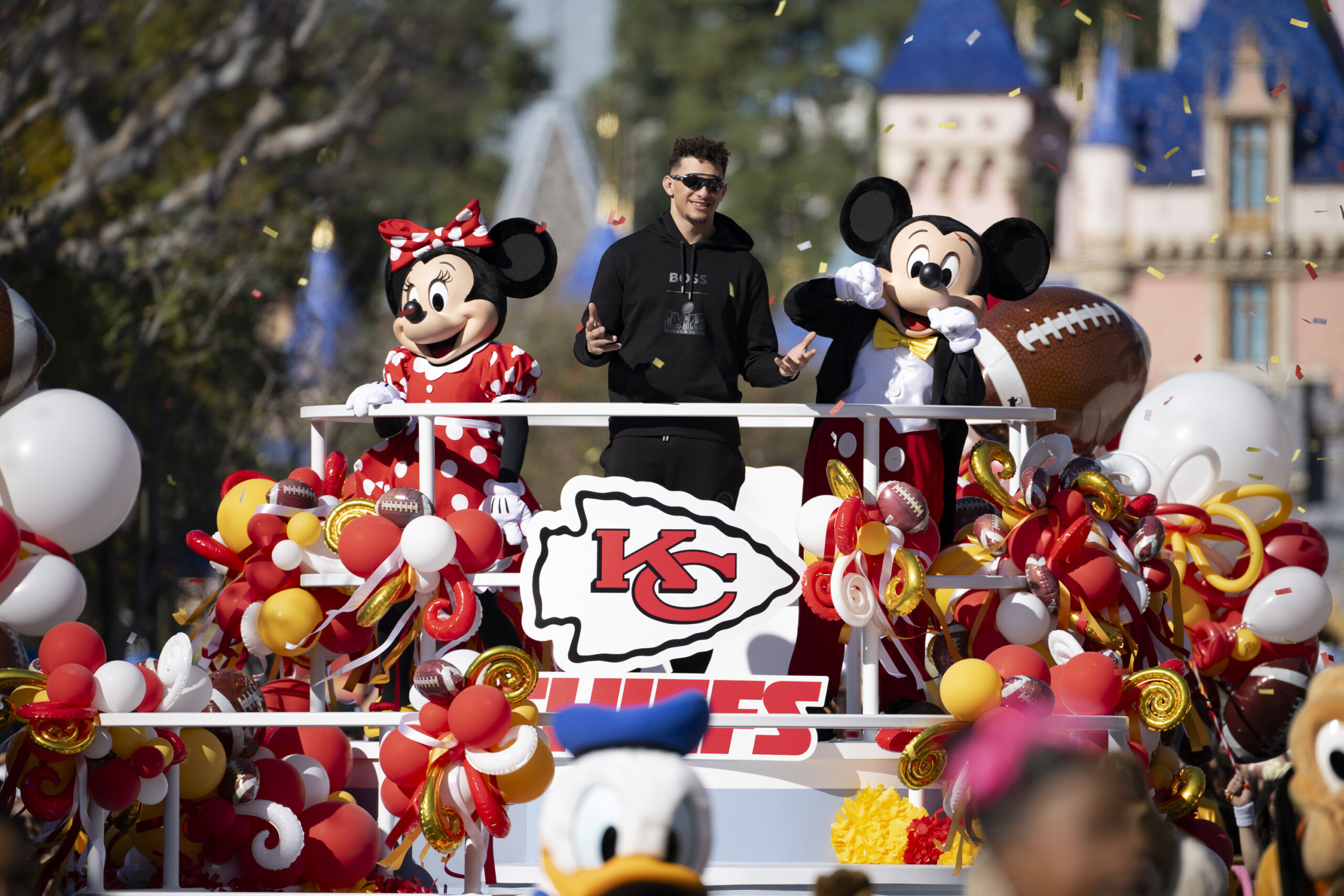 It’s the most magical way for Mahomes to celebrate his team’s Super Bowl title. He led the Chiefs to a 25-22 overtime win over San Francisco in the biggest game of the year. Mahomes threw the game-winning touchdown pass to Mecole Hardman with three seconds left in overtime. His 333 passing yards and two passing touchdowns catapulted his team to the win and launched him into the annals of Disney’s Super Bowl history with his inclusion in the national TV spot and Disneyland Resort trip.