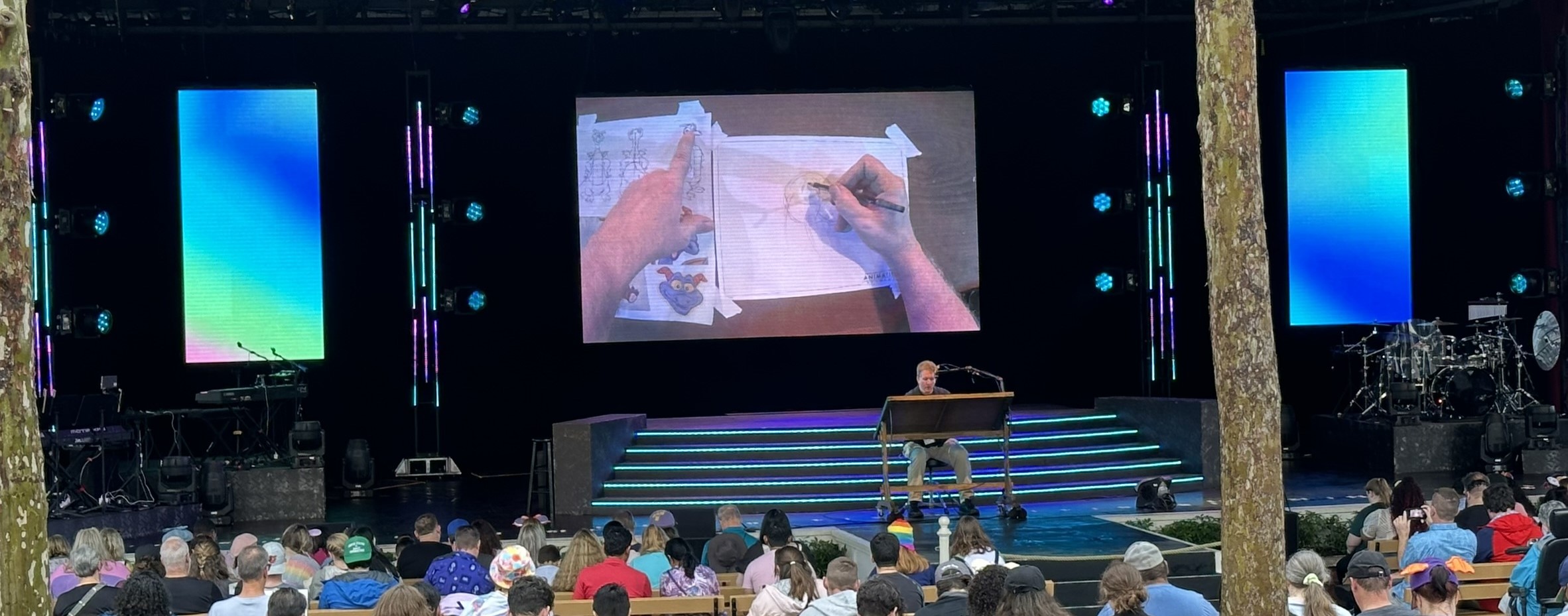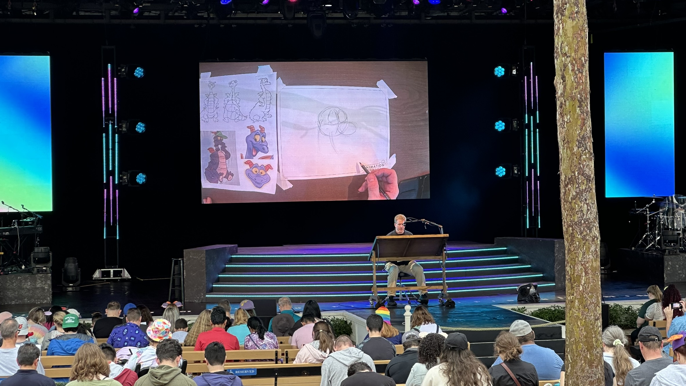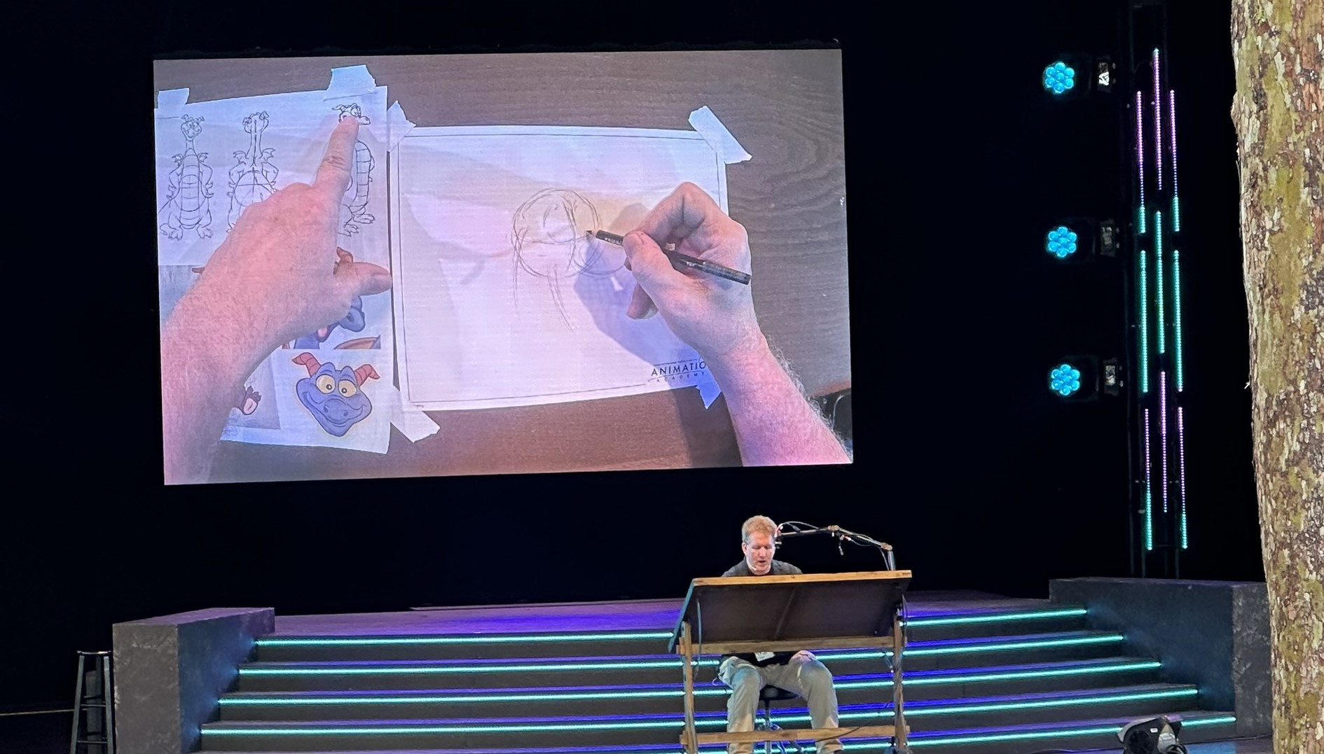 In our latest visit to Animation Academy, the featured character was none other than Figment! As part of this magical Disney animator sketch session, we watched Figment come to life on the page. The crowd joined in, pencils in hand, for a uniquely memorable moment.