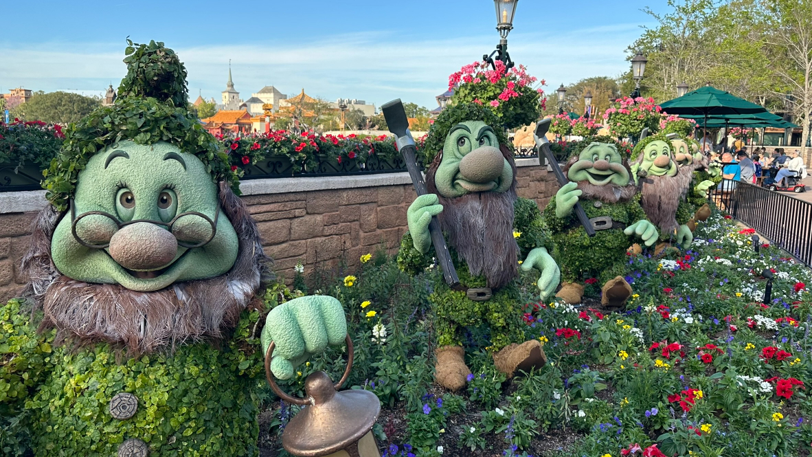 2024 Epcot Flower and Garden Festival Topiaries Snow White and the Seven Dwarfs