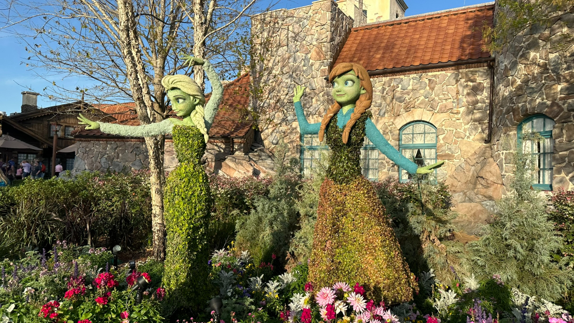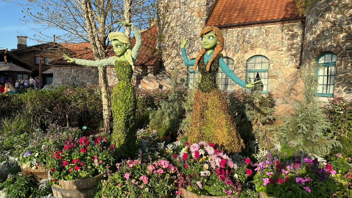 2024 Epcot Flower and Garden Festival Topiaries Anna and Elsa in Norway