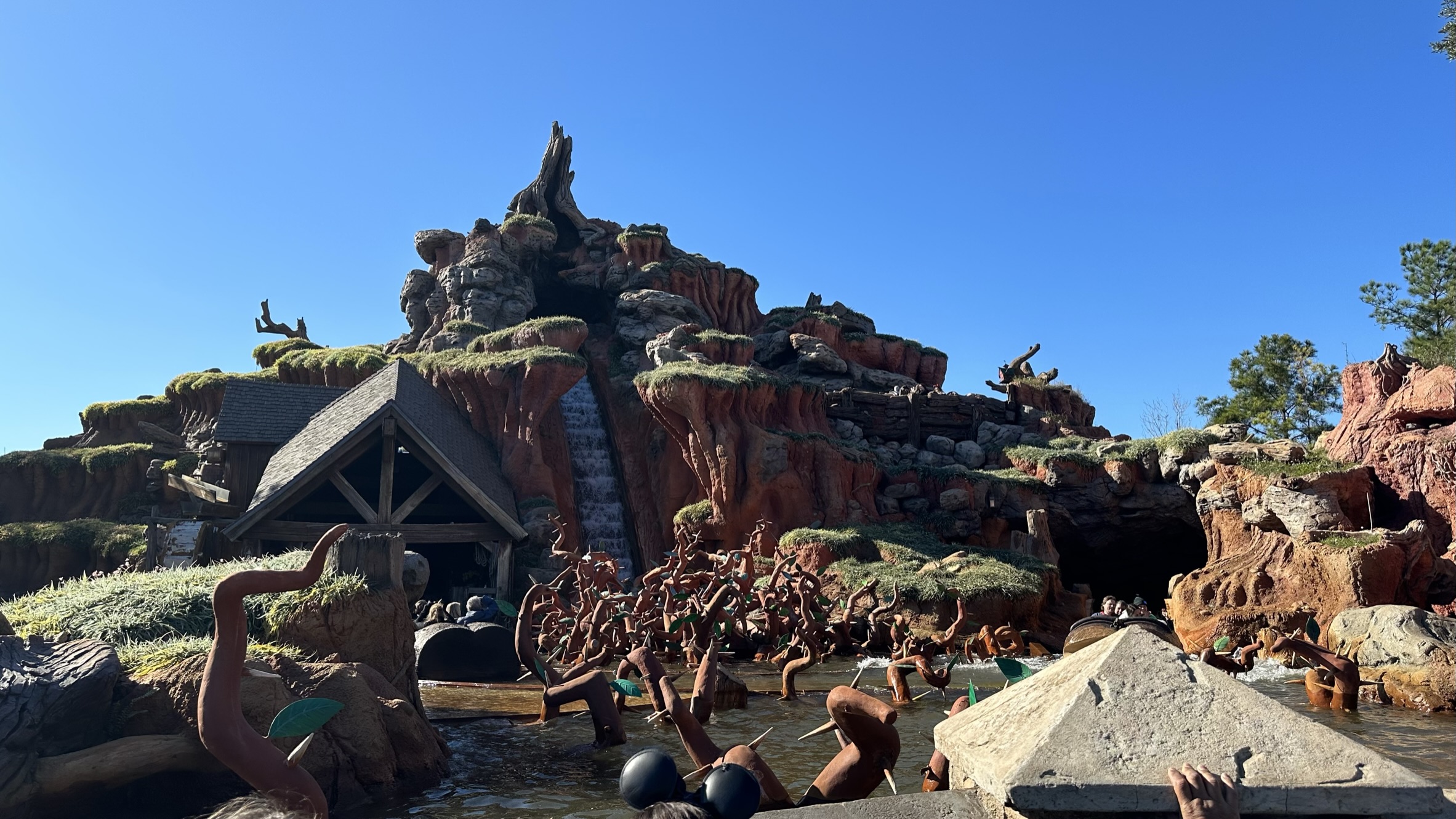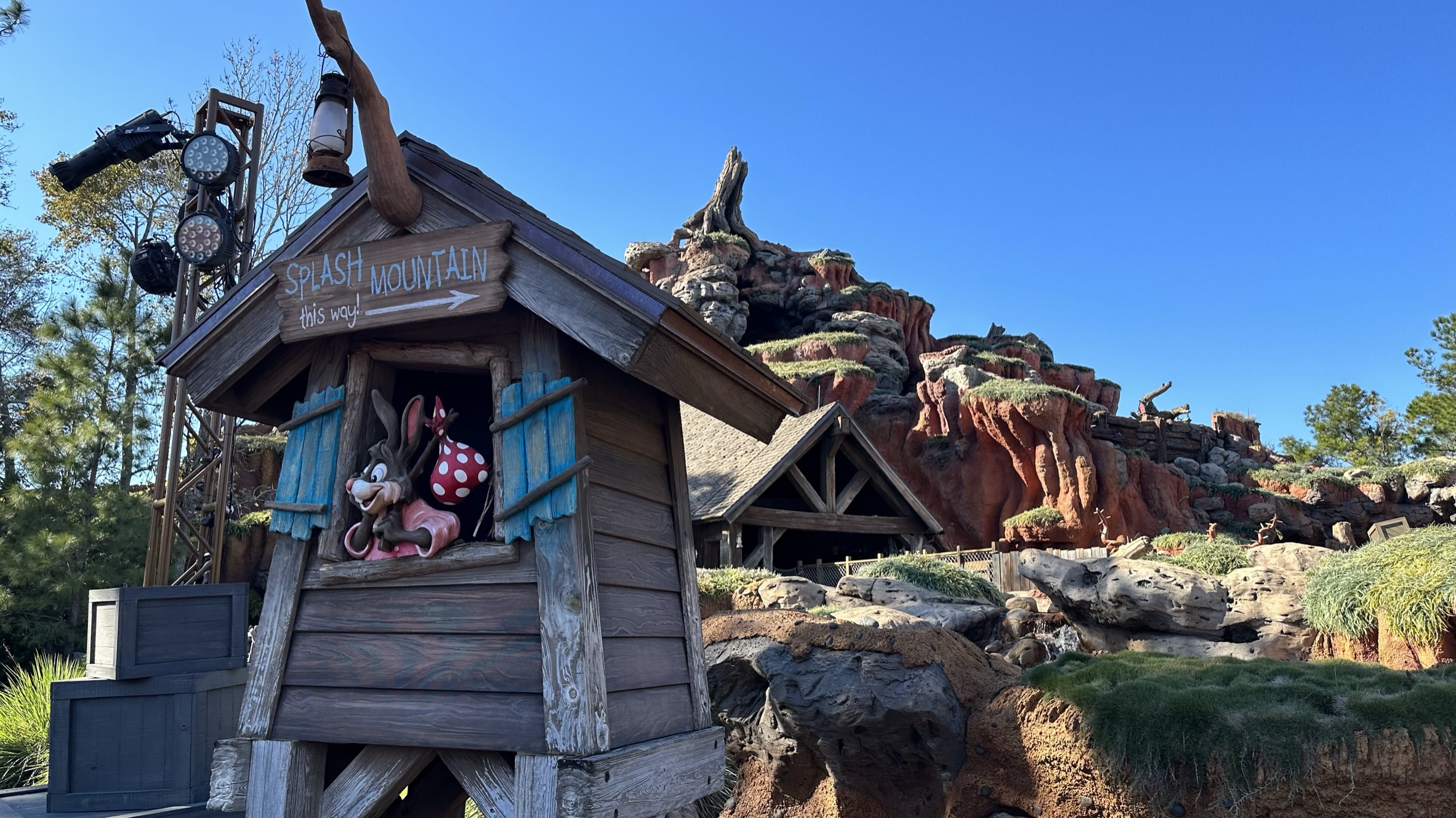 Plans for Splash Mountain at Disneyland were unveiled in January 1987. The project, initially budgeted at $75 million, became one of the most expensive undertakings by Walt Disney Imagineering. By the time America Sings closed in April 1988, its character figures were repurposed for Splash Mountain to help manage costs. Bear Country, home of the Country Bear Jamboree, was renamed Critter Country in anticipation of the ride’s opening.