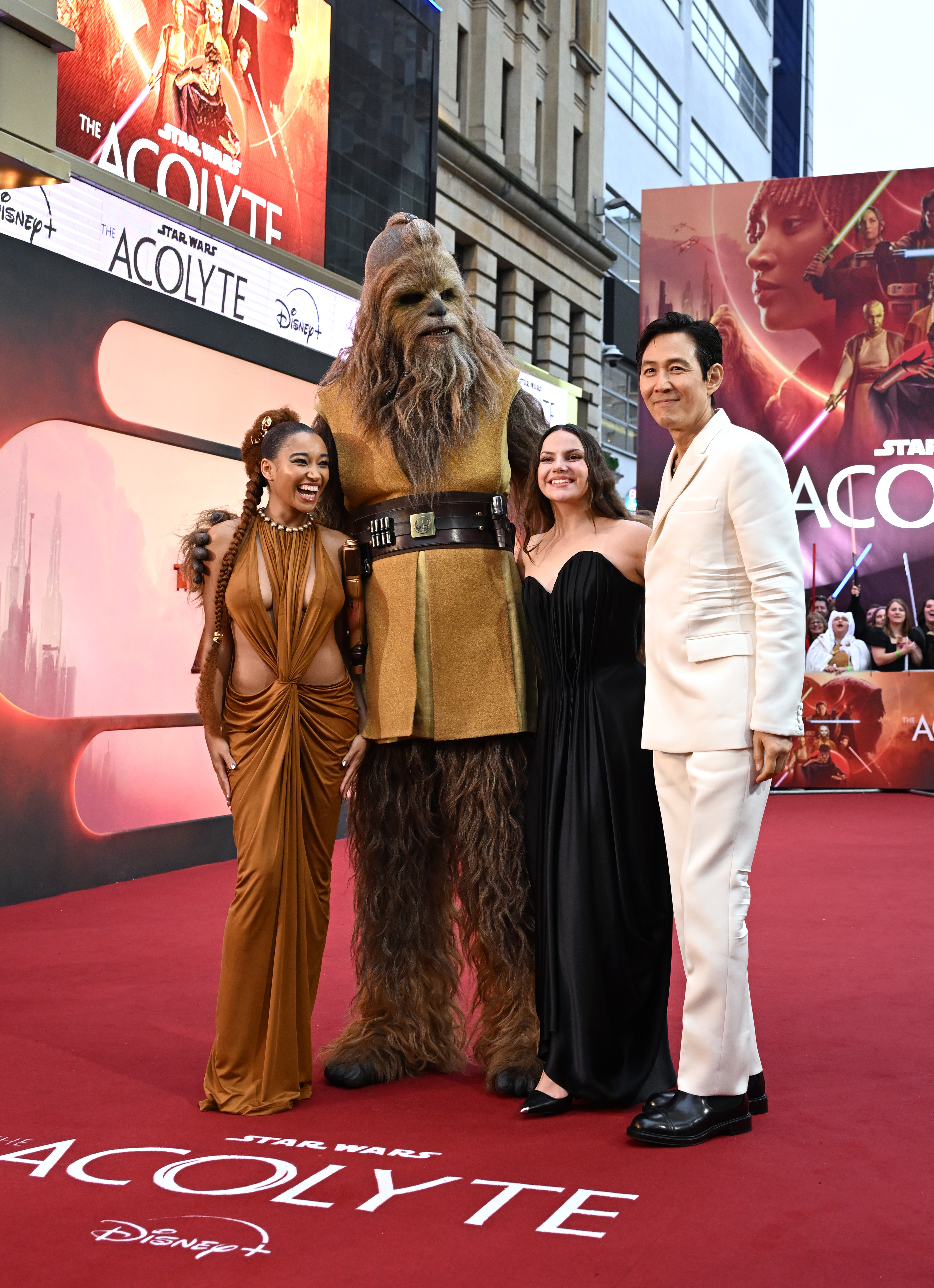 LONDON, ENGLAND – MAY 28: (L-R) Amandla Stenberg, Kelnacca, Dafne Keen and Lee Jung-Jae attend the UK Premiere of Lucasfilm’s “Star Wars: The Acolyte” at Odeon Luxe Leicester Square on May 28, 2024 in London, England. (Photo by Kate Green/Getty Images for Walt Disney Studios Motion Pictures UK)