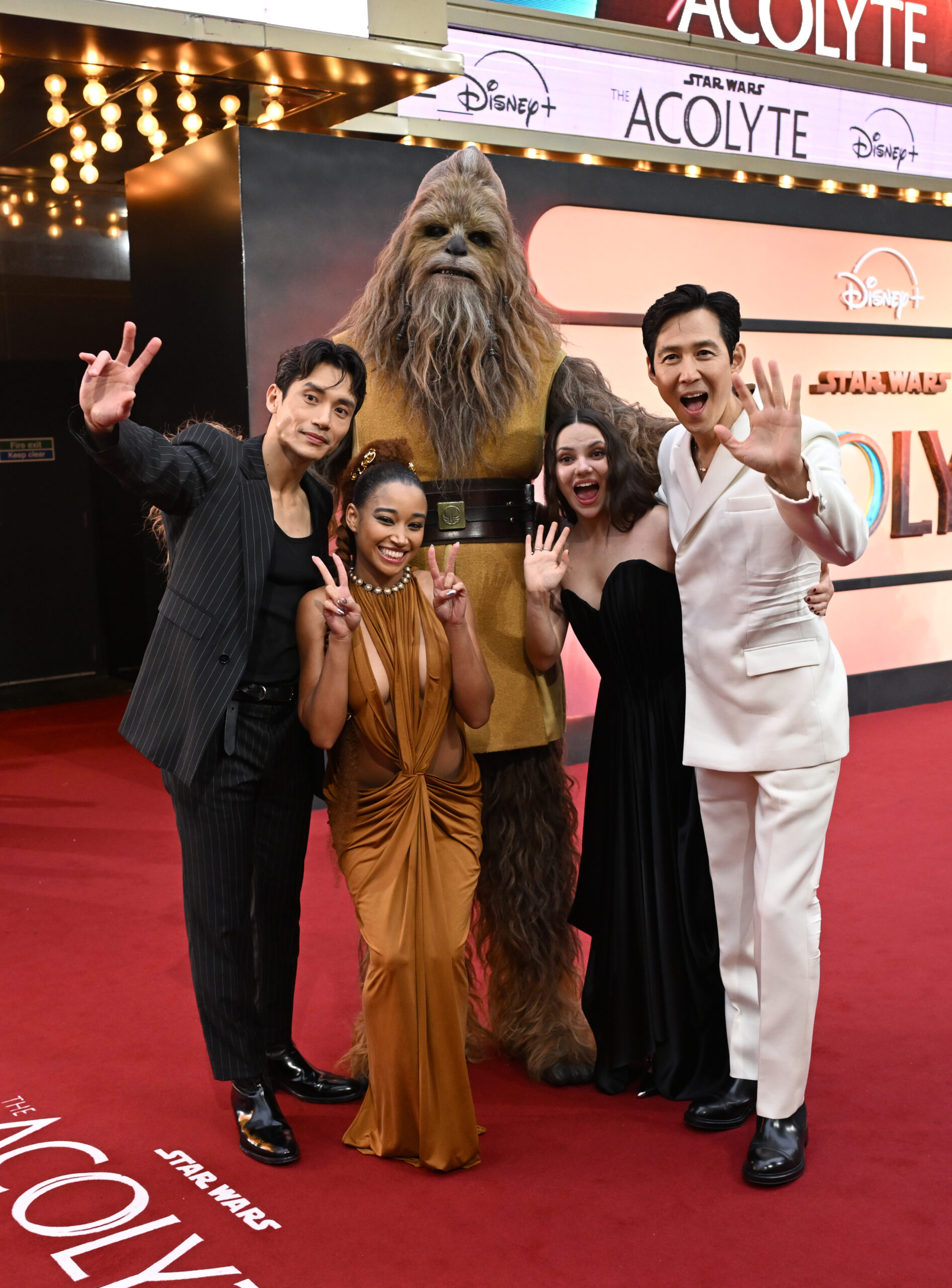 LONDON, ENGLAND – MAY 28: (L-R) Manny Jacinto, Amandla Stenberg, Dafne Keen and Lee Jung-Jae attend the UK Premiere of Lucasfilm’s “Star Wars: The Acolyte” at Odeon Luxe Leicester Square on May 28, 2024 in London, England. (Photo by Kate Green/Getty Images for Walt Disney Studios Motion Pictures UK)