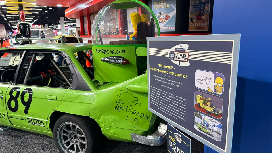 Walt Disney Archives Great Big Beautiful Car Show D23 2024 – The Homer – Homer Simpson’s 1987 BMW 325 designed as a promotions piece for the 25th season of the Simpsons in 2013 and seen in the Hollywood Christmas parade in 1014 and 2019