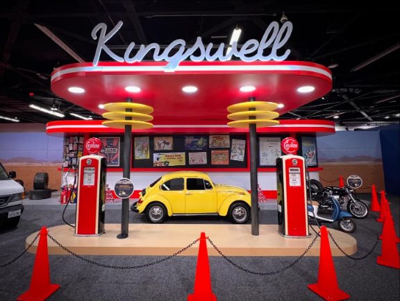 Kingswell Service Station showcased vintage Americana with highlights like the Flubber-powered Model T from The Absent-Minded Professor. The Electric Mayhem van from Muppets Mayhem (2023) drew cheers from Muppet fans. Other popular vehicles included Herbie the Love Bug, the DHARMA van from Lost, and the 1967 Ferrari from Ford v Ferrari.