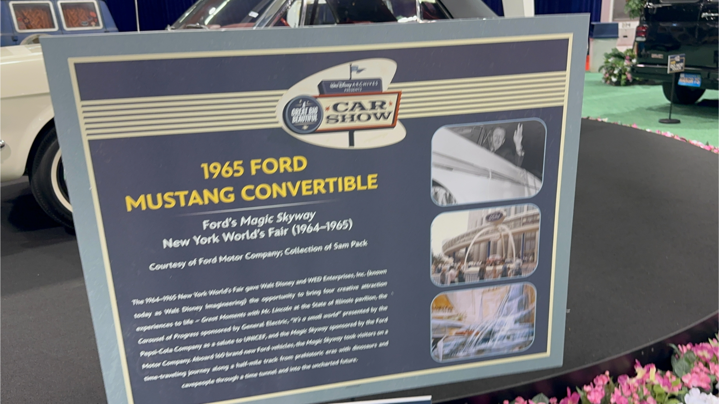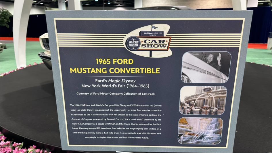 Walt Disney Archives Great Big Beautiful Car Show D23 2024 – 1965 Ford Mustang Convertible from 1964-65 World Fair Attraction Ford’s Magic Skyway
