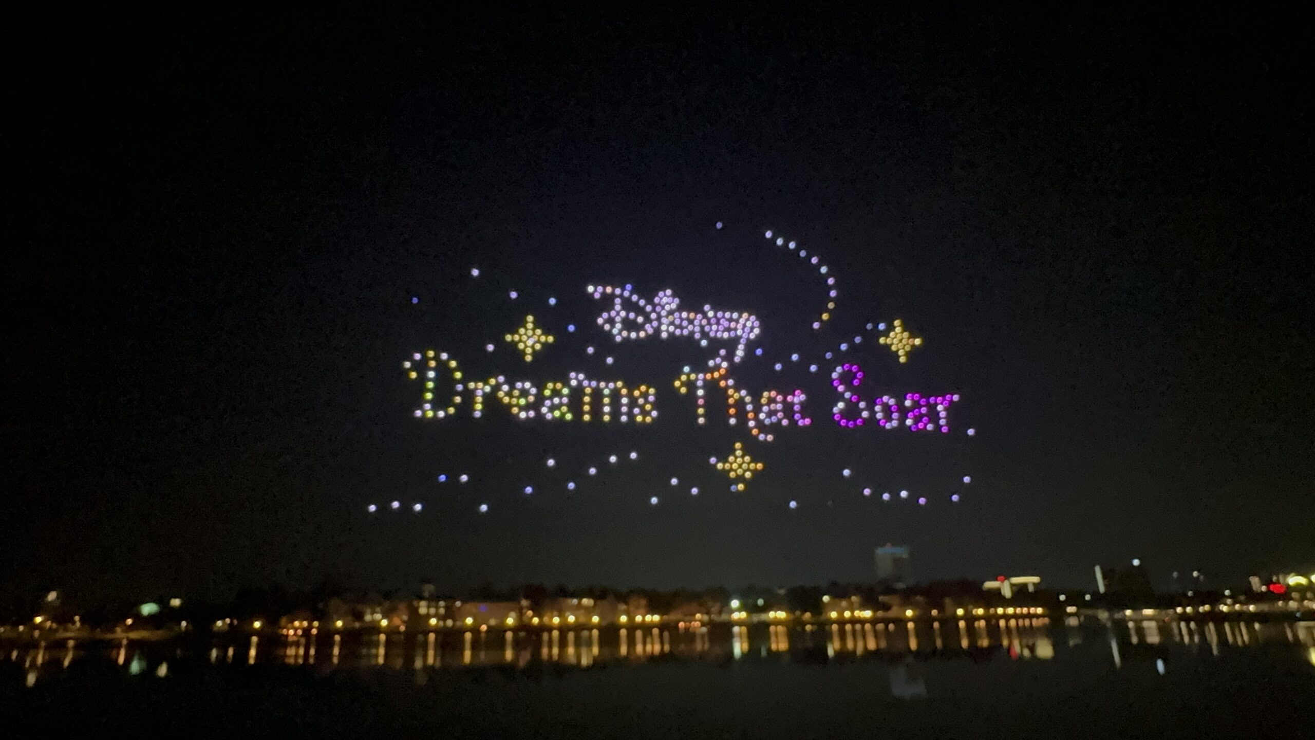 Disney Live Entertainment designed Disney Dreams That Soar to showcase more than 30 Disney characters and films in stunning drone formations. You’ll spot the house from Up, Peter Pan gliding across the sky, Baymax soaring overhead, and even a glowing Death Star. Each segment flows seamlessly with iconic Disney quotes and a custom score by composer Andrew Lipinski.