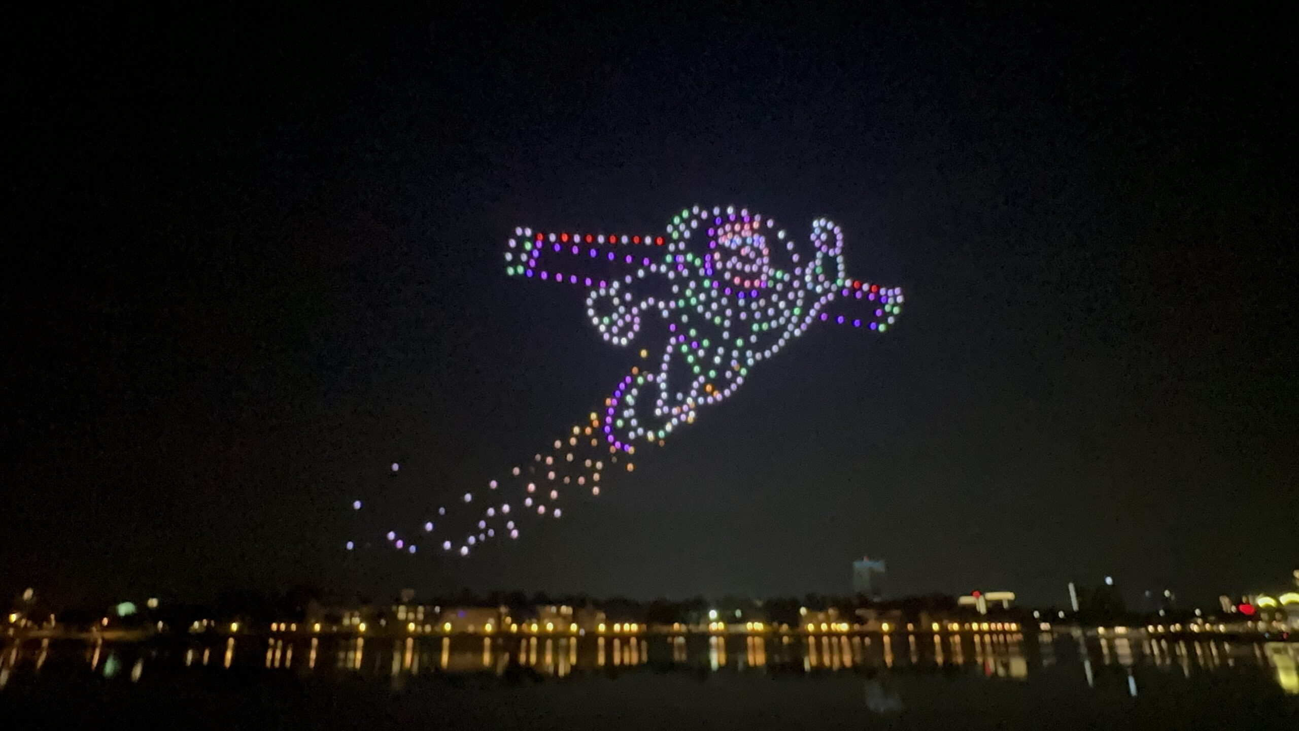 Drones magically form various Disney characters in the sky during testing in France of the new nighttime show coming to Walt Disney World Resort in Lake Buena Vista, Fla. later this month.