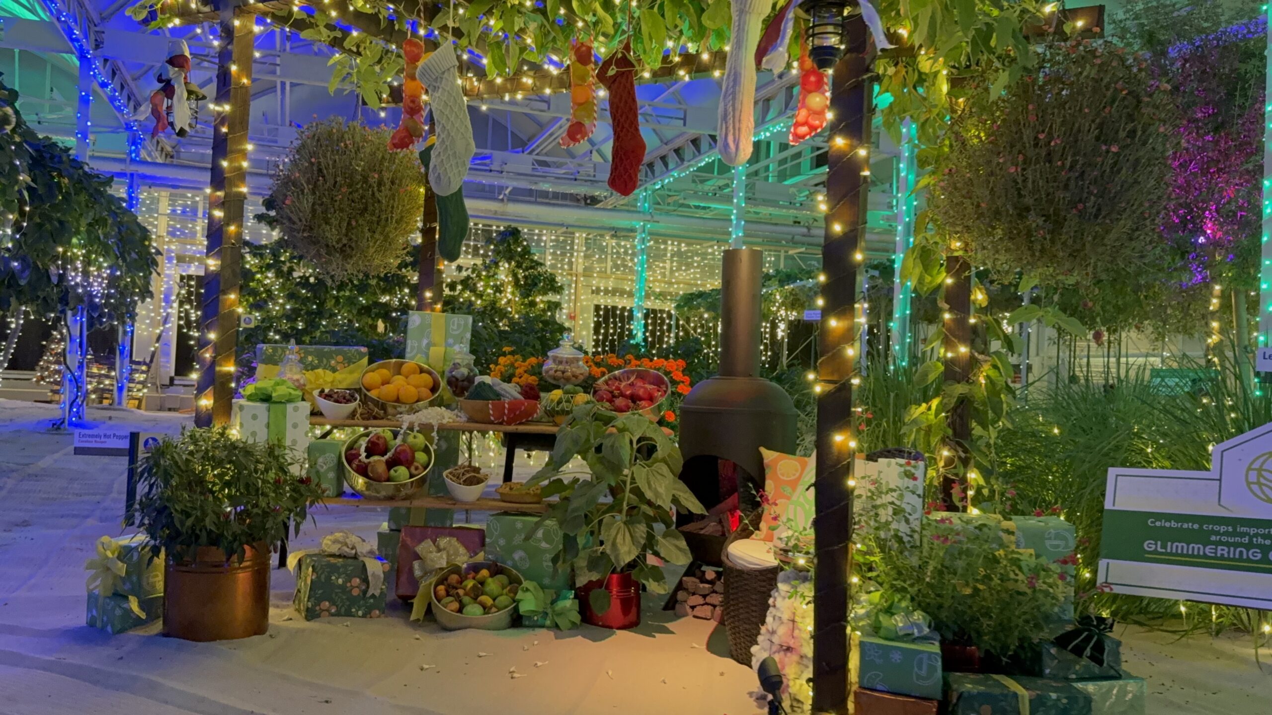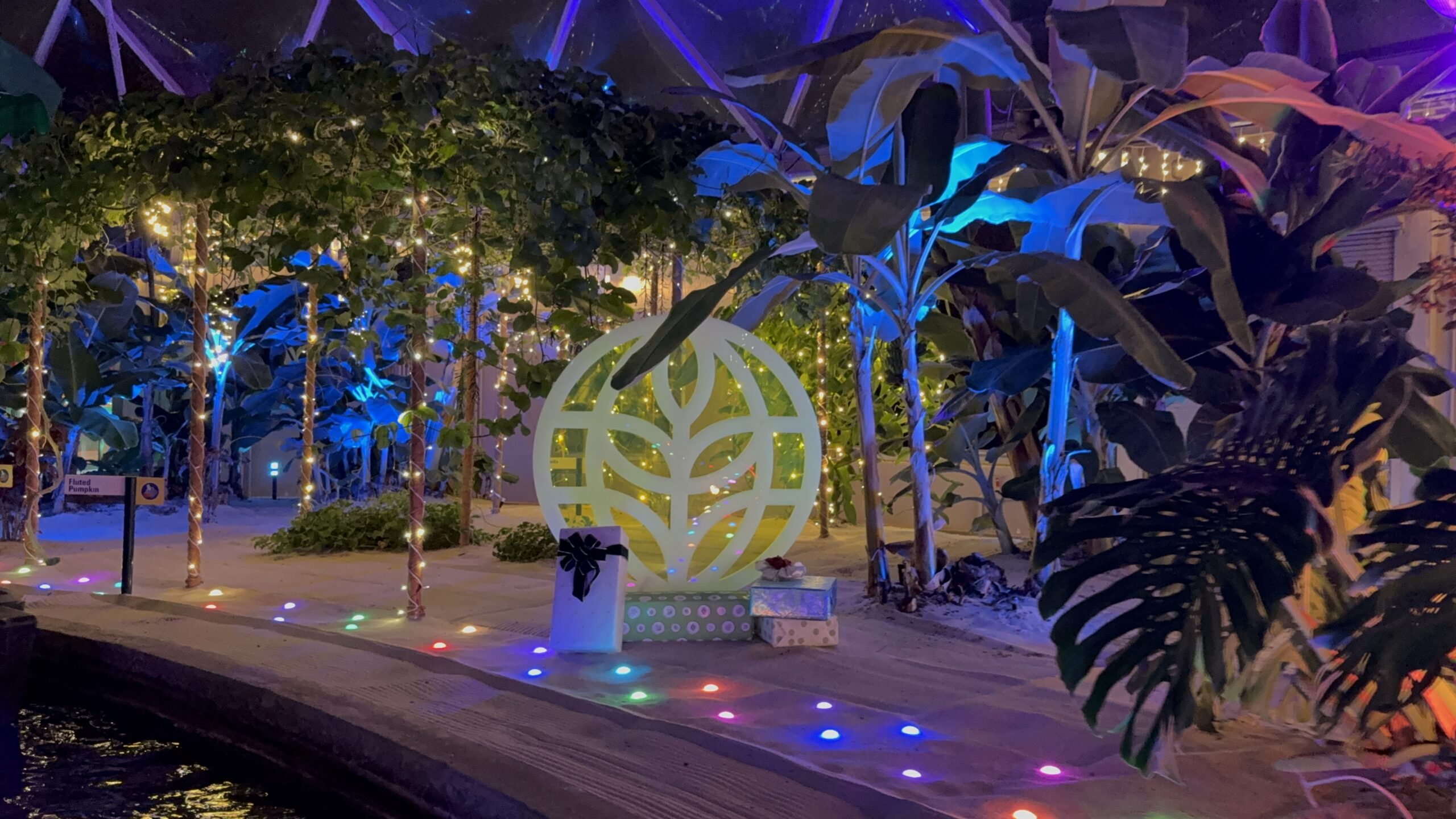 Living with the Land: Glimmering Greenhouses shines with festive lights and holiday decorations, bringing seasonal magic to EPCOT during the 2024 Festival of the Holidays