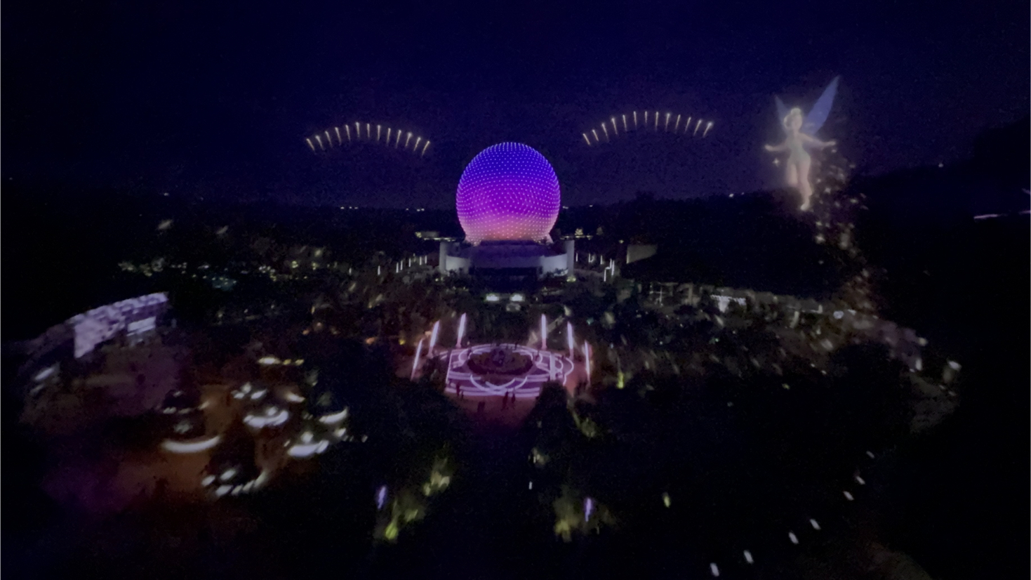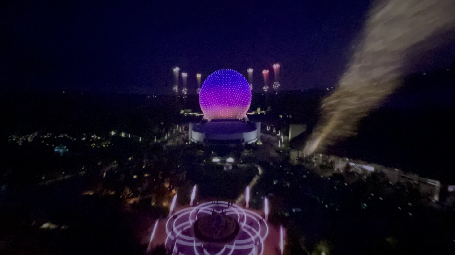 - New Finale: The finale now features EPCOT’s World Celebration neighborhood, showcasing the park’s updated look. Guests glide over a nighttime scene with Spaceship Earth glowing in the distance, surrounded by fireworks. The finale aligns the ride with EPCOT’s current design, reflecting its transformation.