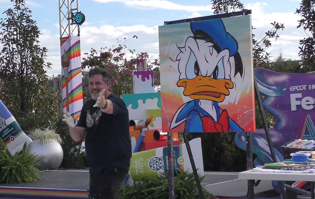 Trevor Carlton brings Donald Duck to life in a stunning live painting performance at the 2025 EPCOT Festival of the Arts on the CommuniCore Plaza stage Trevor Carlton Live at the 2025 EPCOT Festival of the Arts