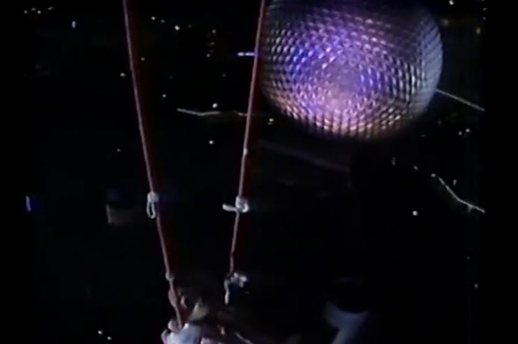 Thrilling performances at the 1987 Walt Disney World Celebrity Circus, including Mickey Mouse on a trapeze and Cirque du Soleil in EPCOT Center’s World Showcase