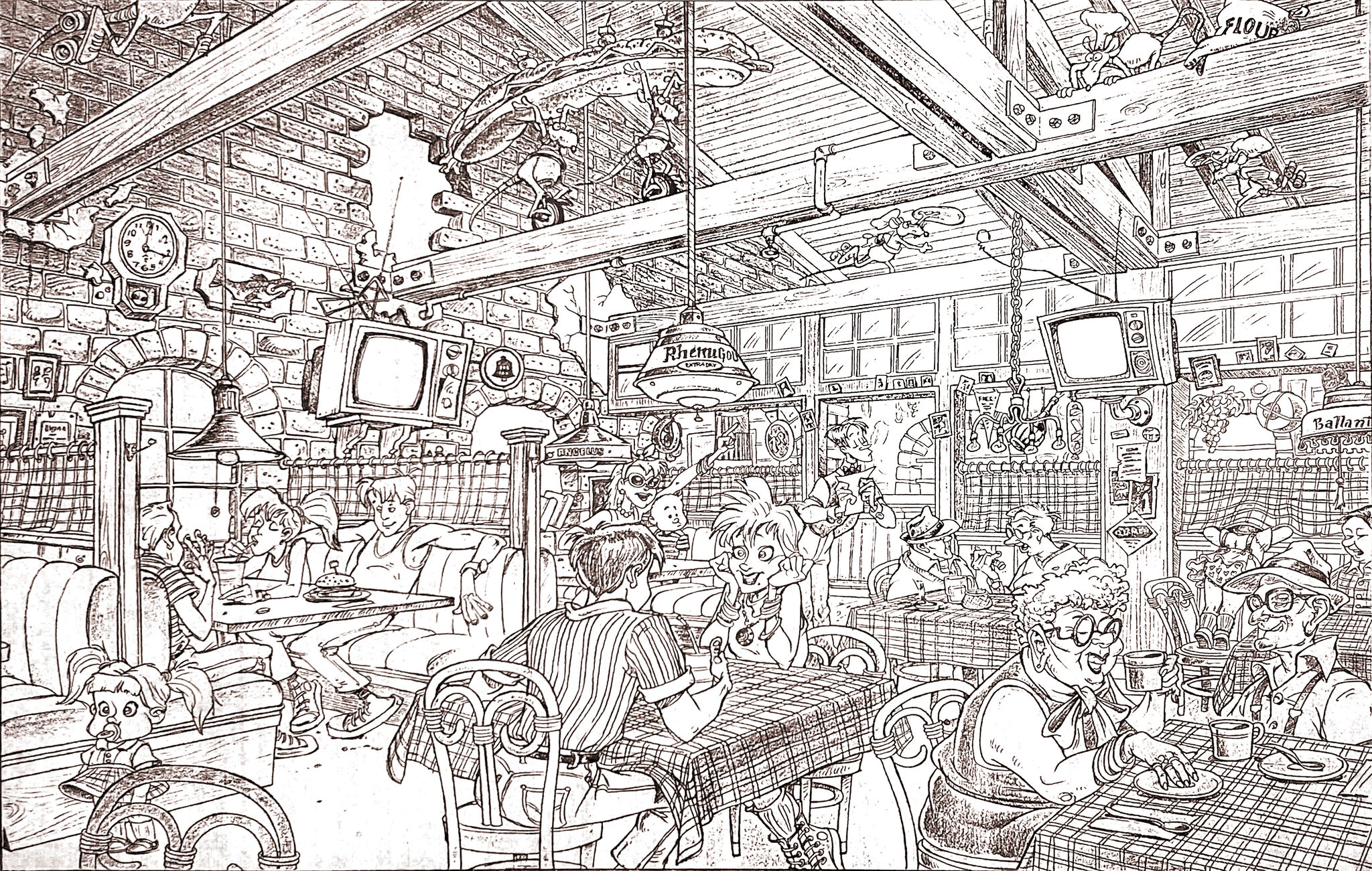 Gonzo’s Pandemonium Pizza Parlor. NY style pizza parlour restaurant that was to be in Muppet Land. The idea was that the rats have taken over the restaurant, helping to make the food. In the back, visible to the restaurant patrons, an audio animatronic Swedish Chef would making pizza. SOURCE LInkedIN: Marcelo Vignalii