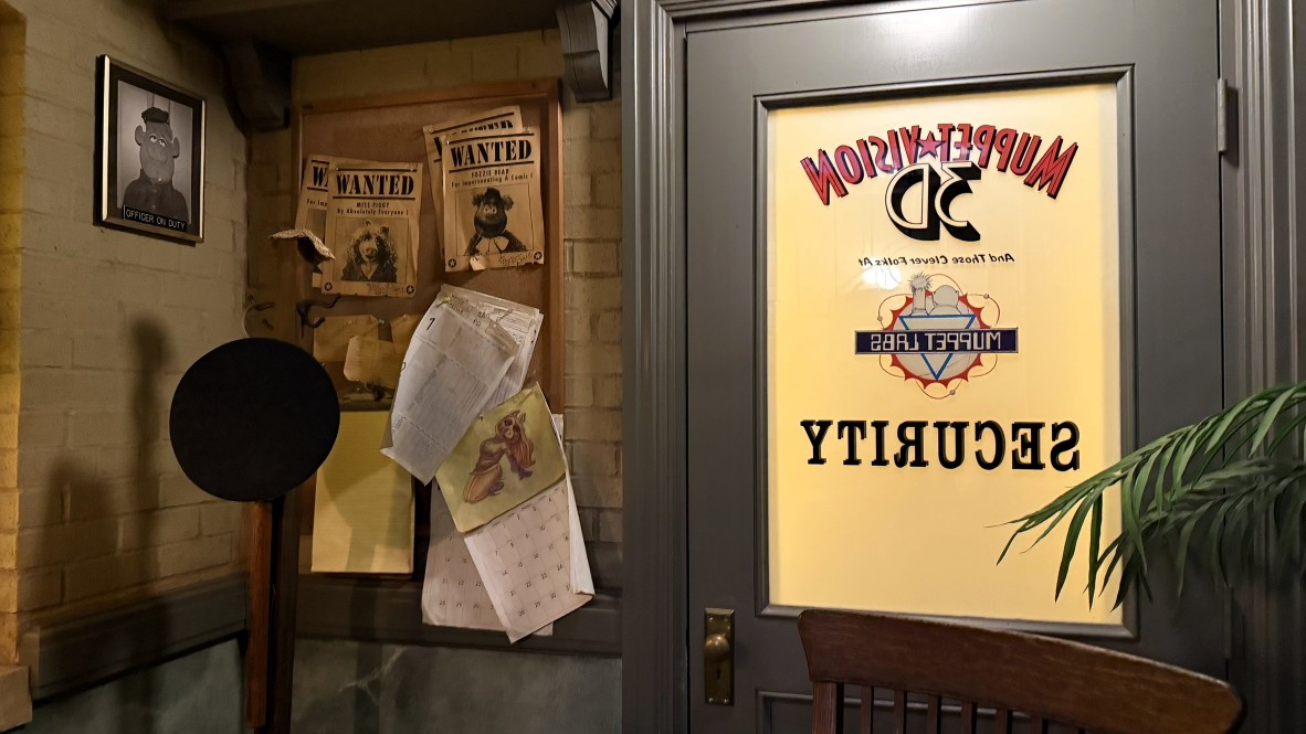 The legendary security desk—home to one of Muppet Vision 3D’s best hidden gags. Yes, the key really is under the mat!