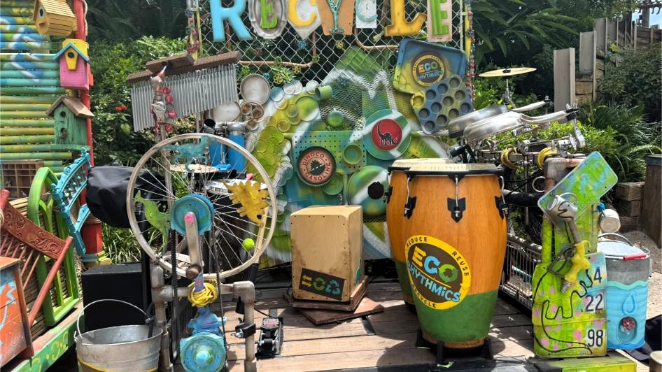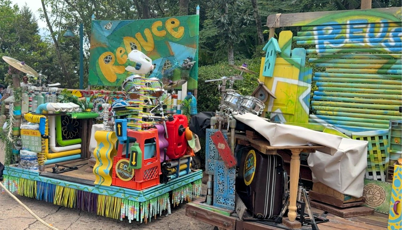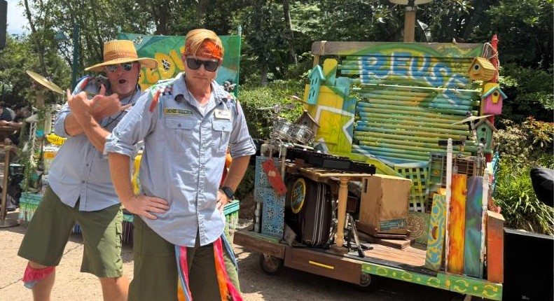 As Disney prepares to reimagine Dinoland U.S.A., a new form of entertainment has taken the stage—literally. The Eco-Rhythmics, a high-energy percussion group themed around sustainability, is now performing daily at Disney’s Animal Kingdom. Introduced in early 2025, the group features three characters: Reduce, Reuse, and Recycle. During this recorded show, only Reduce and Reuse were present, as Recycle was away at a conference.