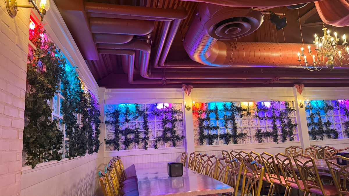 Step inside the upstairs of PizzeRizzo—home to the never-ending 1980s Muppet wedding reception, complete with disco lights, checkerboard floors, and hilarious details hidden in every corner.