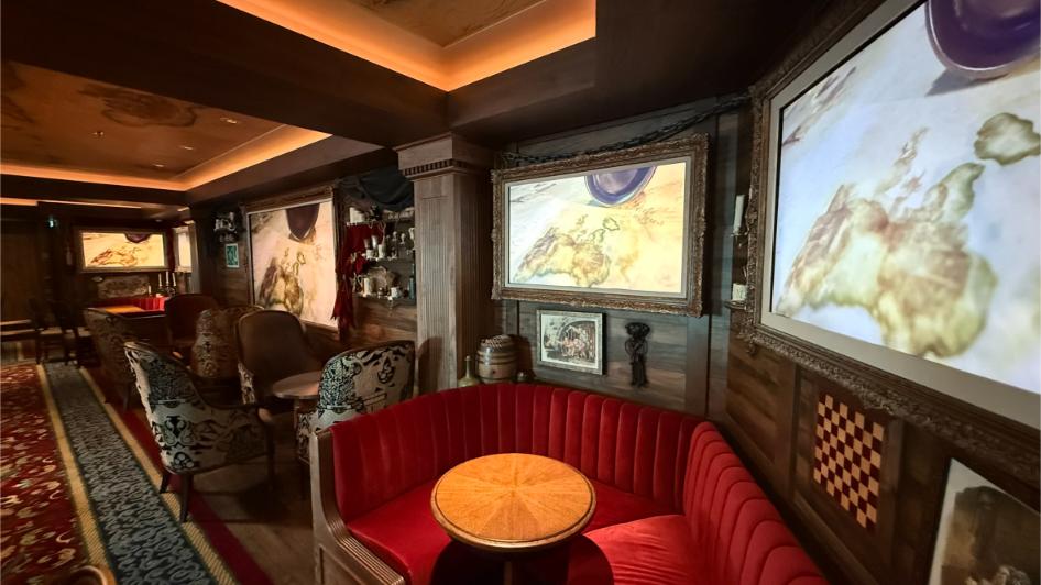While Cask & Cannon is a deeply themed environment, it also had to function as a flexible space. The Imagineer explained that the lounge hosts daytime activities such as drawing classes and trivia. Later, it transitions into a sports bar in the evening.
