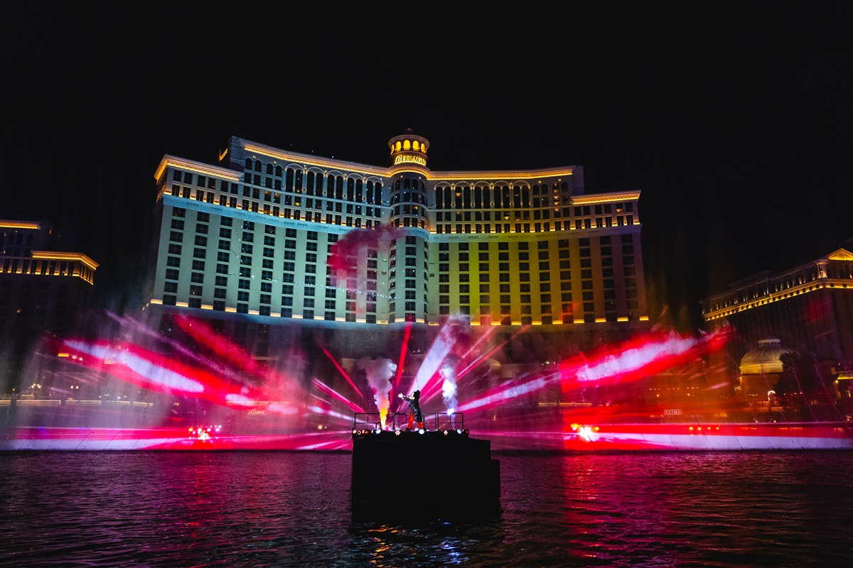 For the first time ever, Mickey Mouse took center stage in front of the Fountains of Bellagio. Disney Live Entertainment delivered a one‑of‑a‑kind show blending music from Fantasia with the iconic Formula 1 theme. The performance featured:
