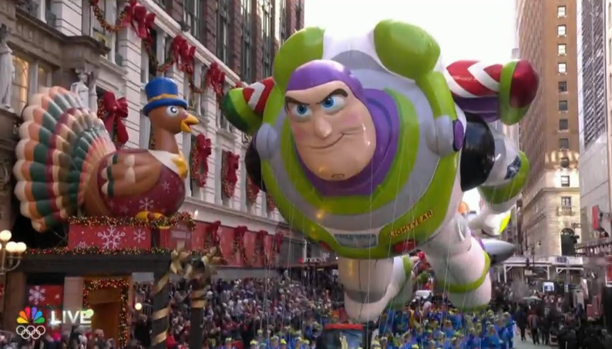 Buzz Lightyear’s balloon history stretches far beyond this year’s parade. He debuted as a giant balloon in 2008. Instantly becoming a crowd favorite thanks to his wings-out, “Space Ranger on duty” pose. That first-generation balloon appeared annually through 2013, giving Buzz a solid six-year run.