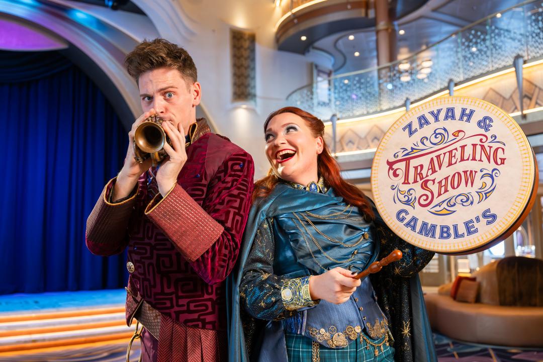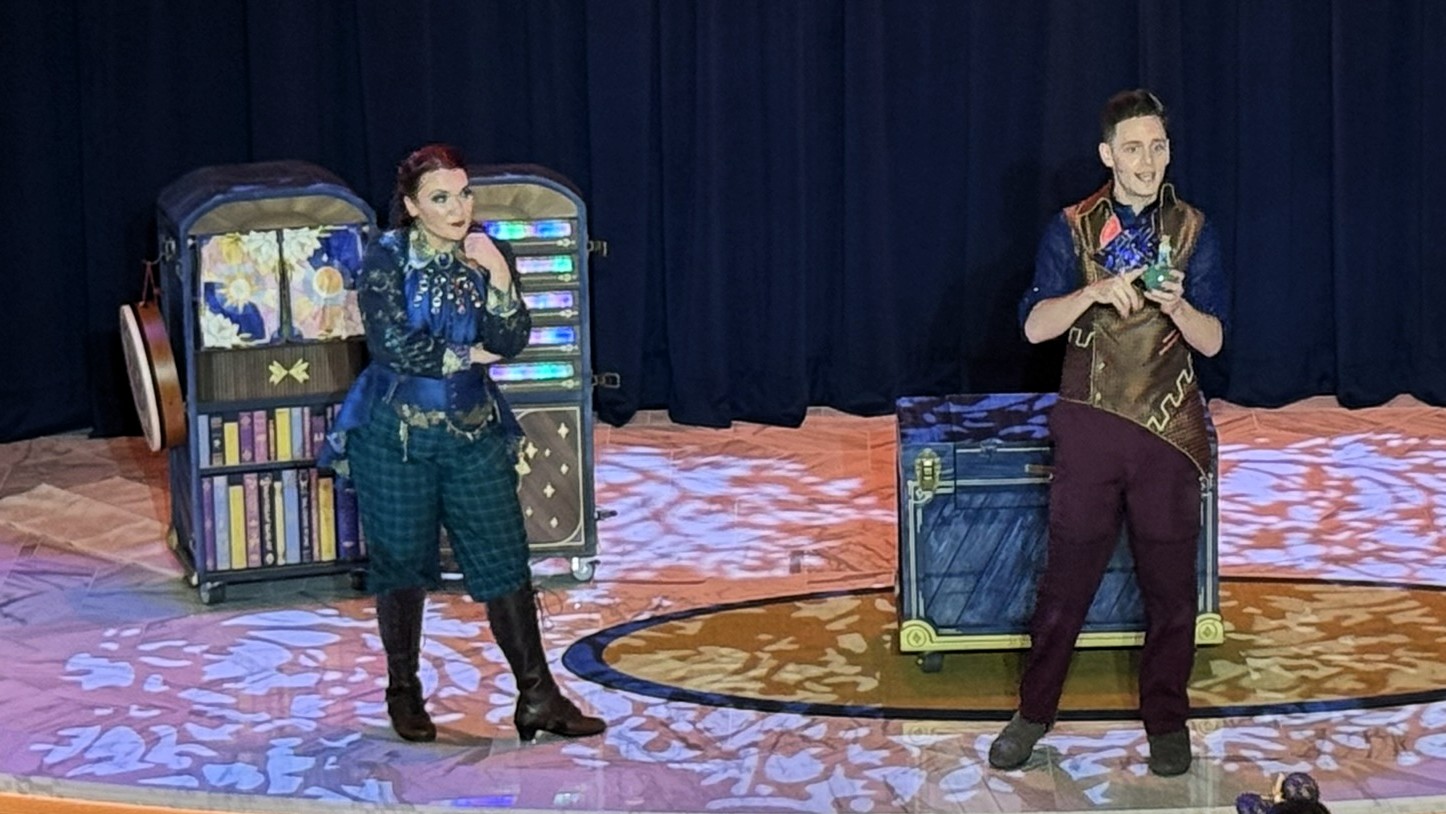 Zayah and Gamble play a major role in Disney Destiny, serving as guides, storytellers, and hosts throughout the voyage. Their natural banter and quick reactions make them a perfect fit for this style of performance. Because they drive the action, each show feels slightly different. Their improvisation keeps the audience engaged, and the personal touches make every guest feel involved.
